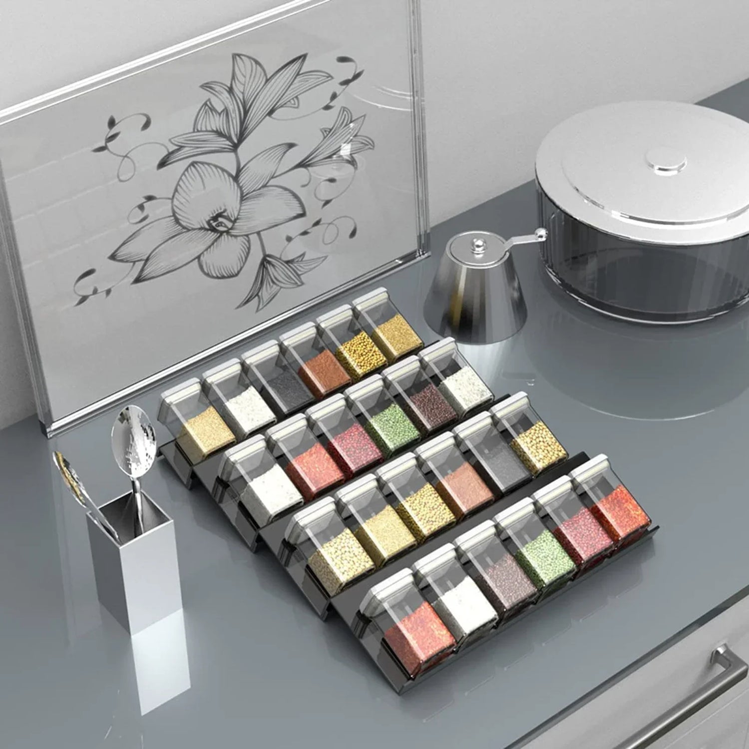 📌 Perfekt översikt vid en blick – Med den sneda designen ser du omedelbart vilken krydda du behöver – idealisk för snabb matlagning utan avbrott.