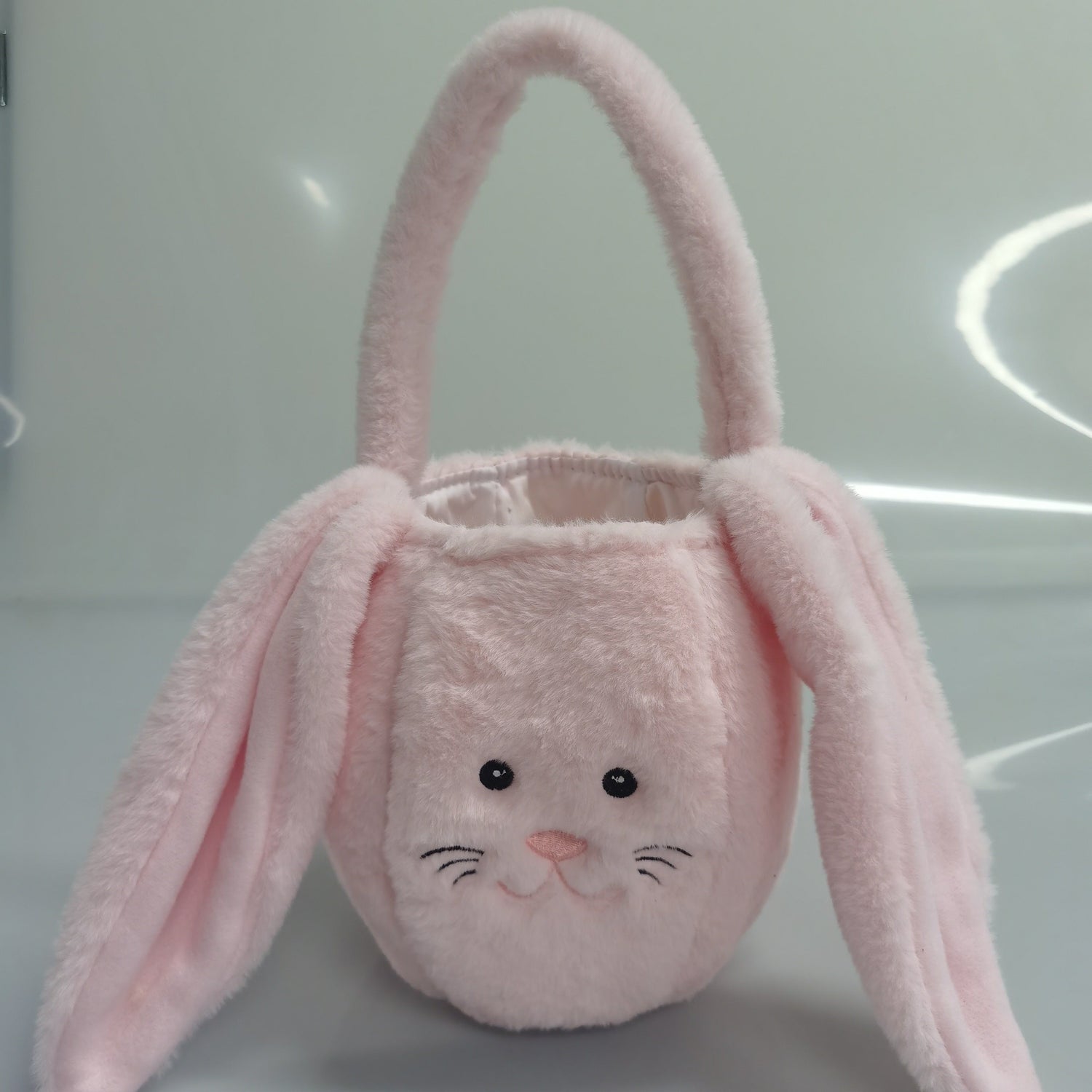 Denna bedårande påskkanin korg är det perfekta tillbehöret för att samla påskägg eller som en unik påskpresent. Gjord av mjuk polyester, är denna korg inte bara ett utmärkt sätt att leta efter påskägg med stil, utan också en rolig dekoration för ditt hem. Korgen har ett sött kaninansikte och långa öron, vilket gör den till ett glatt tillskott till varje påskfirande. Lättviktig och enkel för barn att bära, är den den perfekta följeslagaren för påskäggsjakt.
