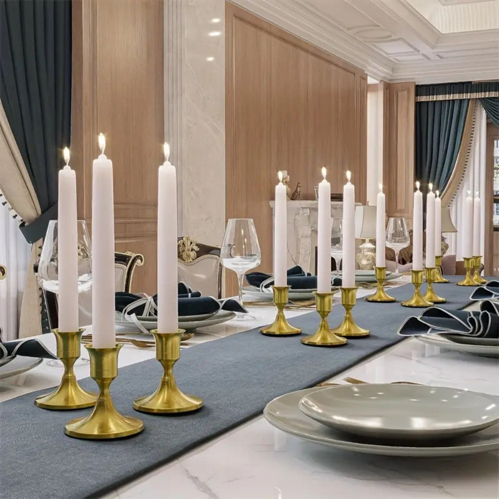 Förbättra din inredning med Shimmering Vintage Candle Holder 2pc Set, designad för tidlös elegans. Perfekt för bröllop, romantiska middagar och festliga firanden, dessa lyxiga metallhållare tillför en sofistikering till alla miljöer. Tillverkad av hållbart järn med en pulverlackad yta, erbjuder de en stabil, stilig bas för stump ljus och skapar en varm, inbjudande atmosfär.