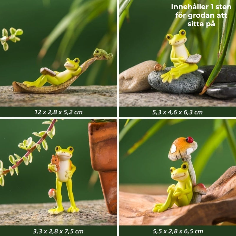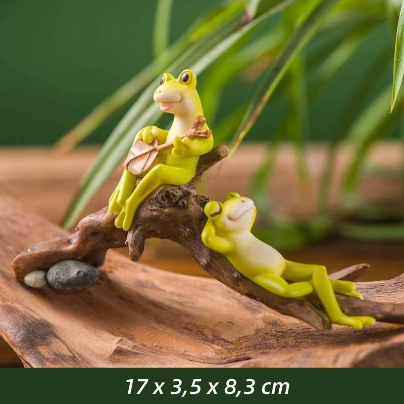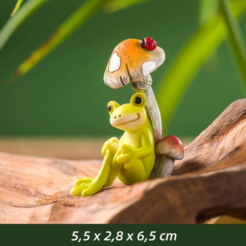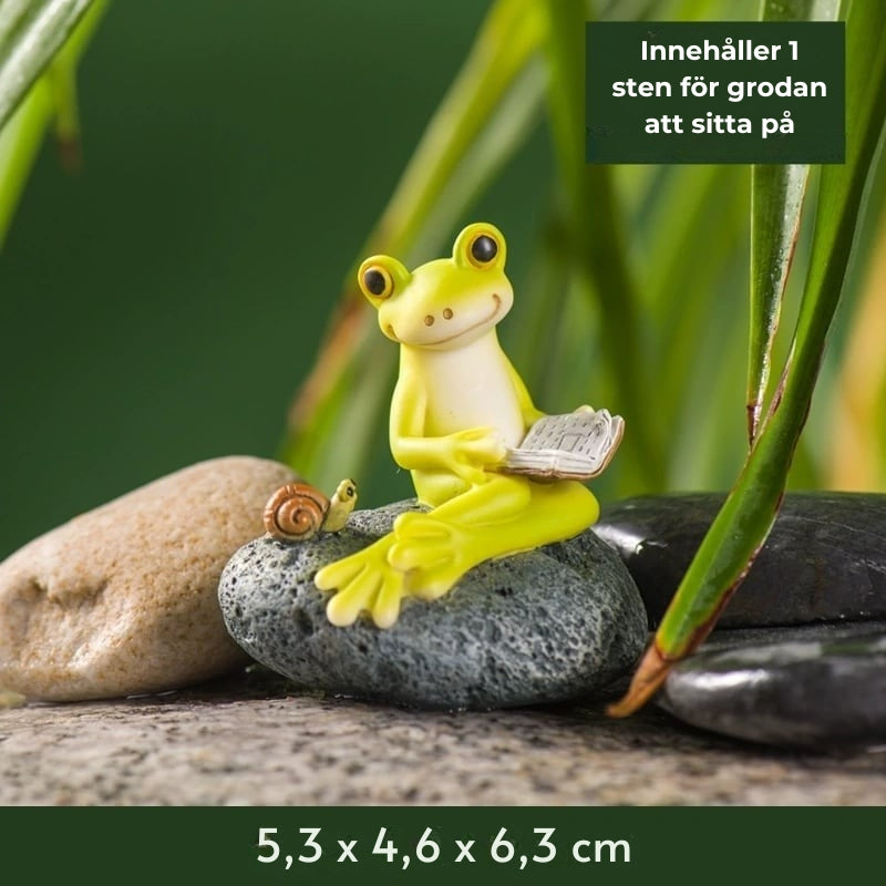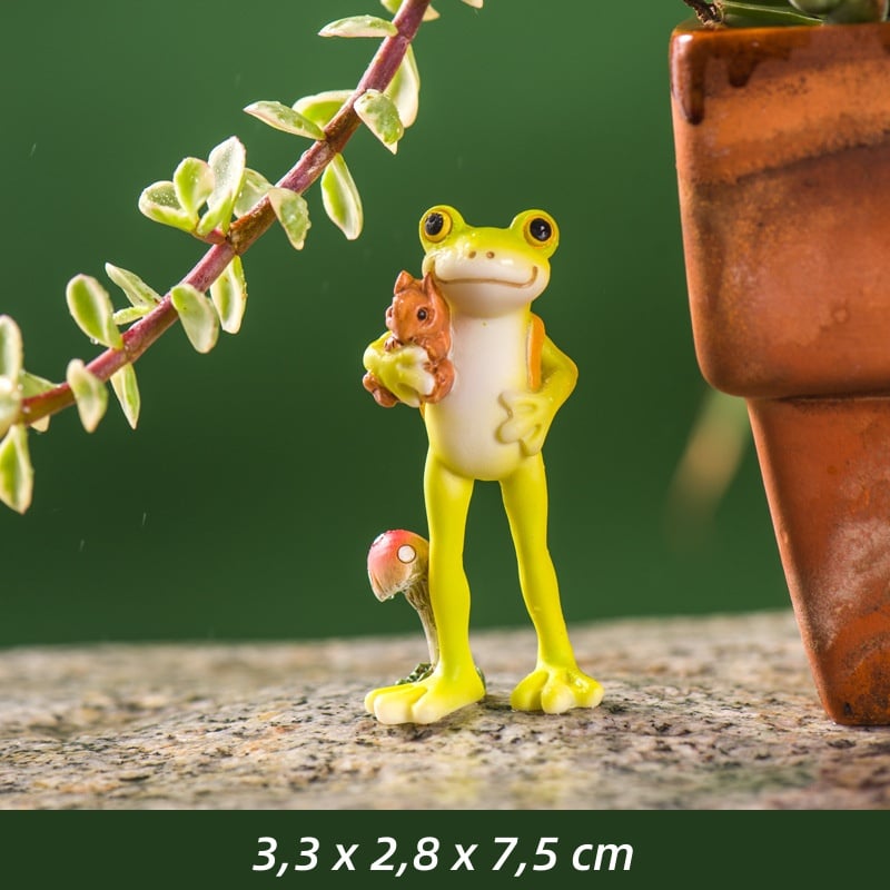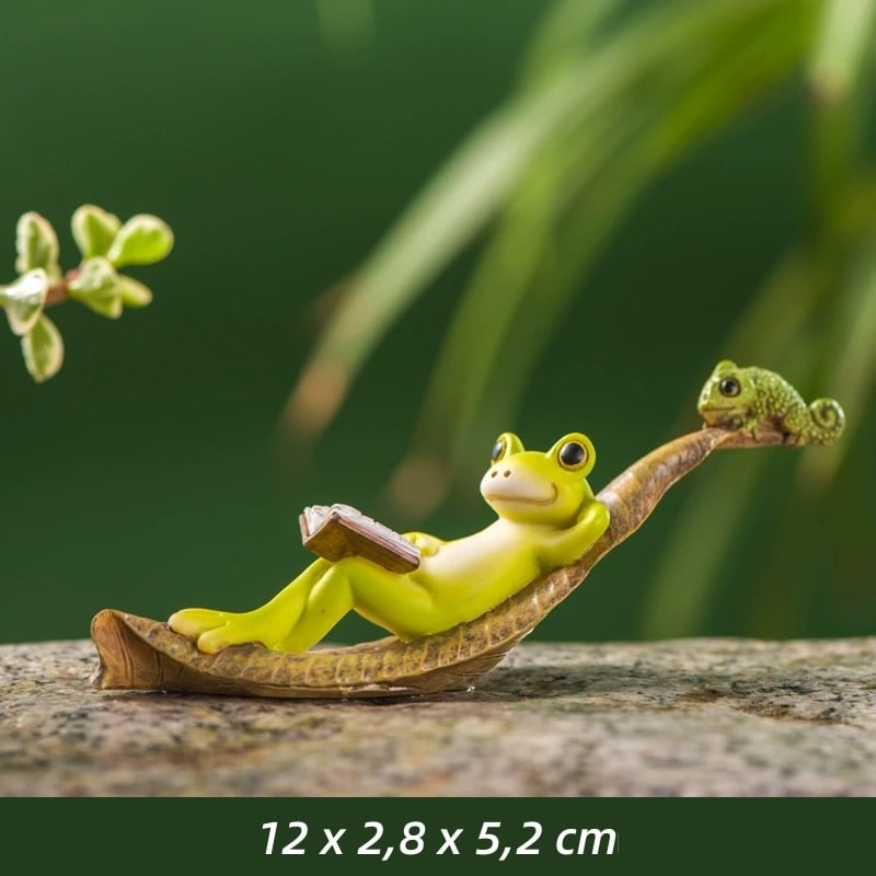 Ge dina växter charm och fantasi med grodan i resin. Tillverkad av högkvalitativ, väderbeständig resin, klamrar sig denna glada groda fast på kanten av dina blomkrukor och ger en rolig och iögonfallande accent till trädgårdar, balkonger, fönsterbrädor eller inomhusväxter. Perfekt för växtälskare som uppskattar en touch av personlighet och kreativitet i sina grönområden.