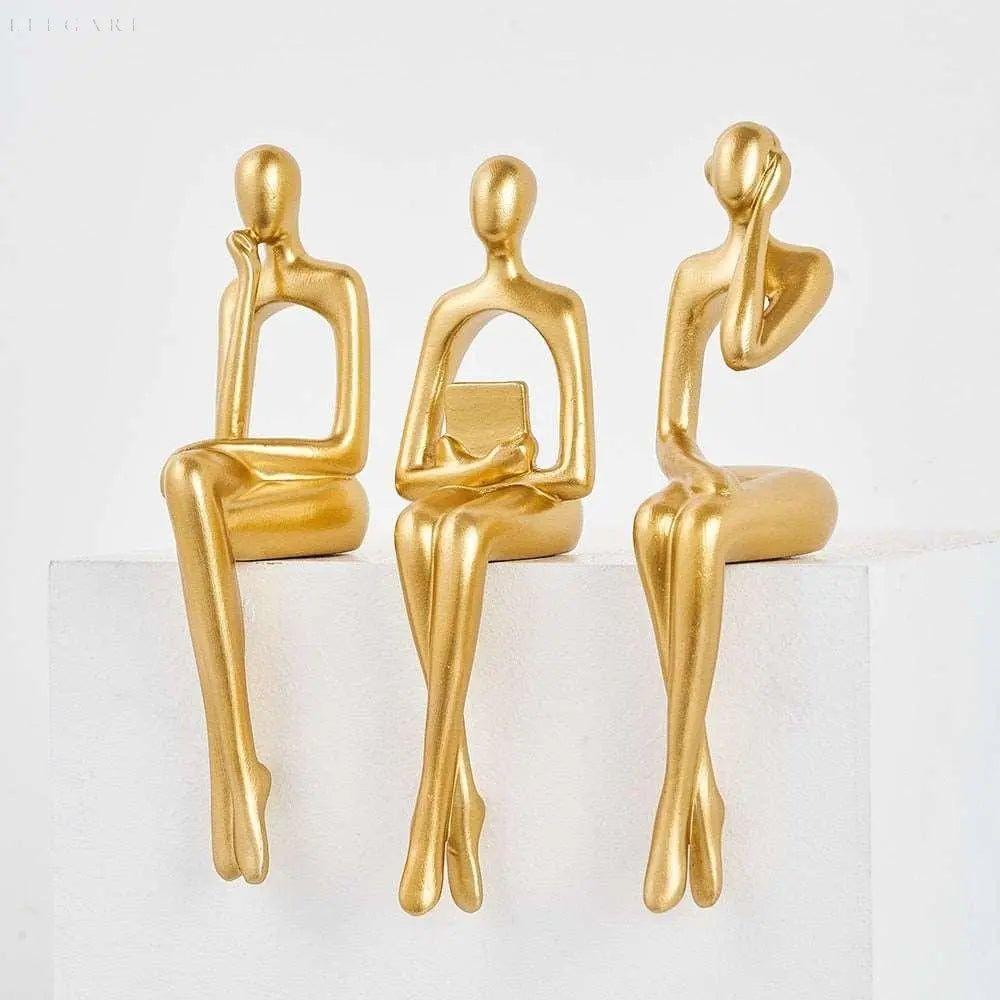 Inspirerade av den ikoniska statyn "Tänkaren" av Auguste Rodin är dessa gyllene abstrakta tänkare en unik och insiktsfull tillskott till varje heminredning. Varje staty är handsnidades och handmålade i en fantastisk guldfärg och visar en annan pose av tänkaren, såsom att lyfta hakan, lyssna med hörlurar eller läsa en bok.