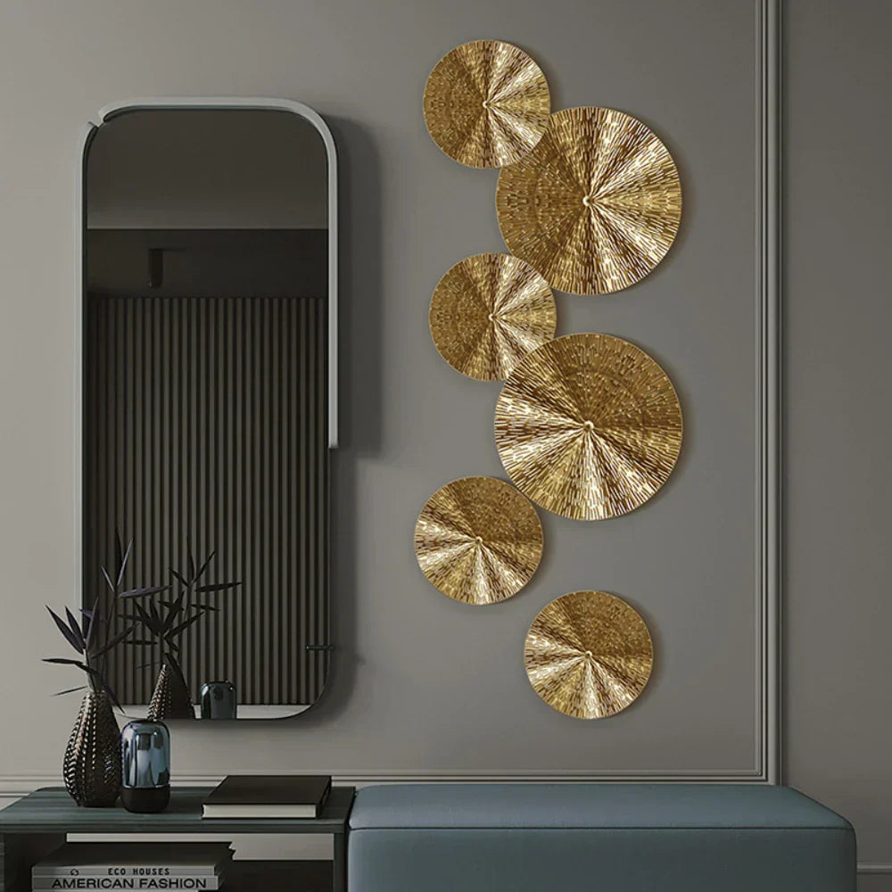 Gyllene minimalistisk cirkelväggskulptur – Modern metallinredning