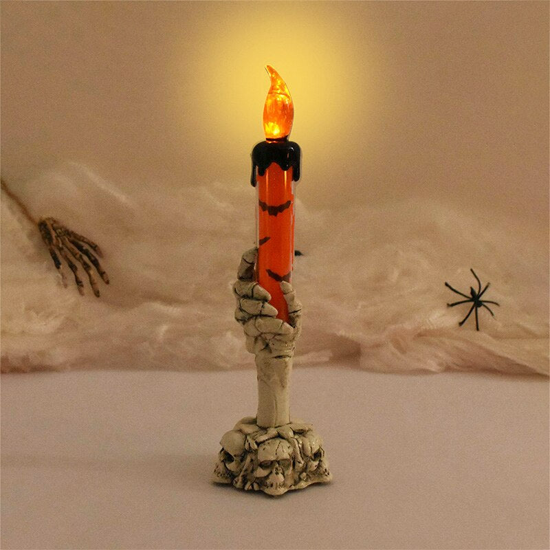 LED-Ljushållare med Skelett Hand – Skrämmande Halloween Dekoration, Rökfria Ljus för Fest och Hem