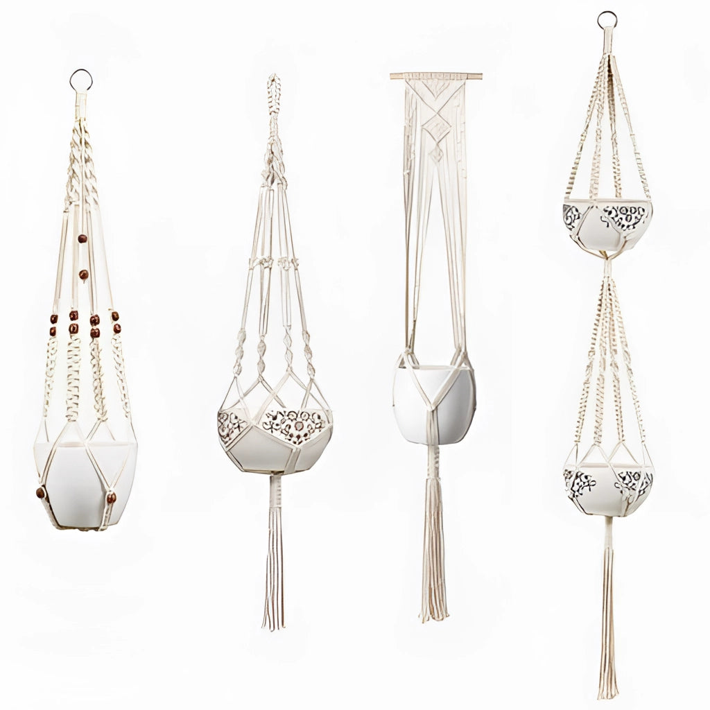 Handgjorda Boho Makramee Växthängare Set av 4 – Stilsäkra Inomhus Växtstöd för Vardagsrum och Kök