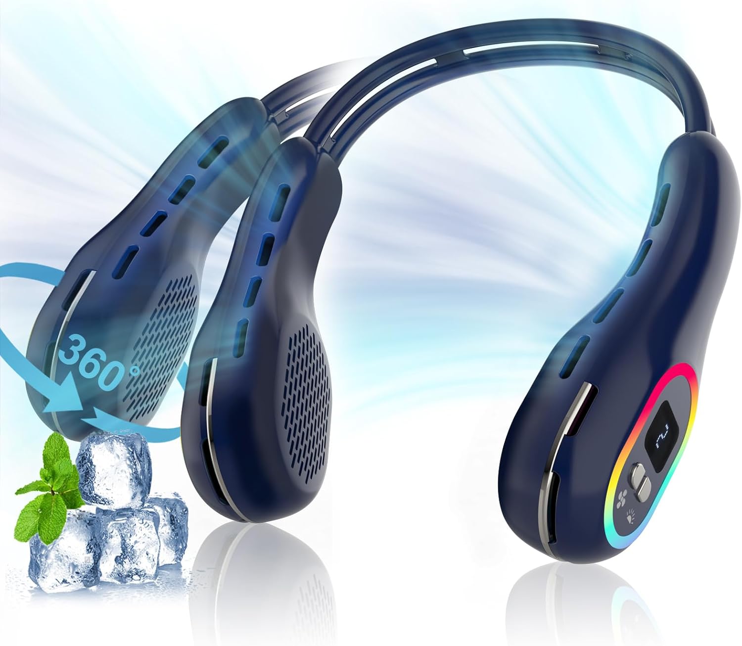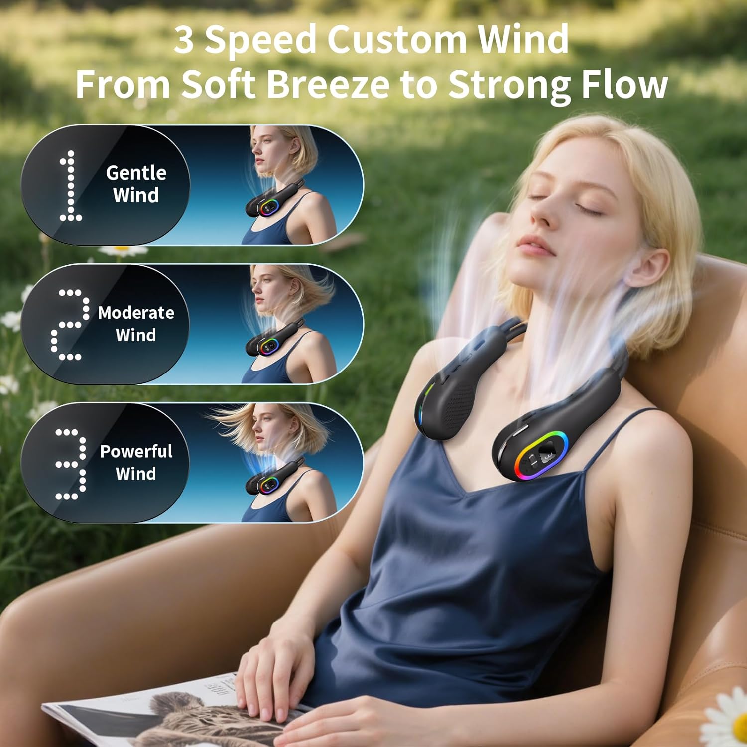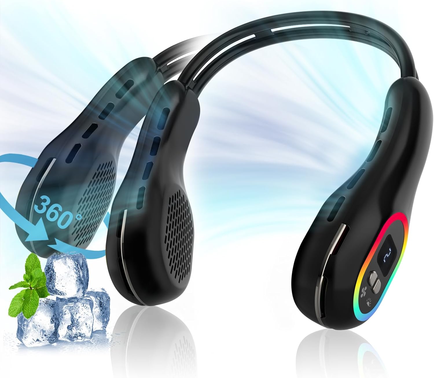 360° justerbar nackfläkt med LED-lampor – Håll dig sval med stil, var du än går!