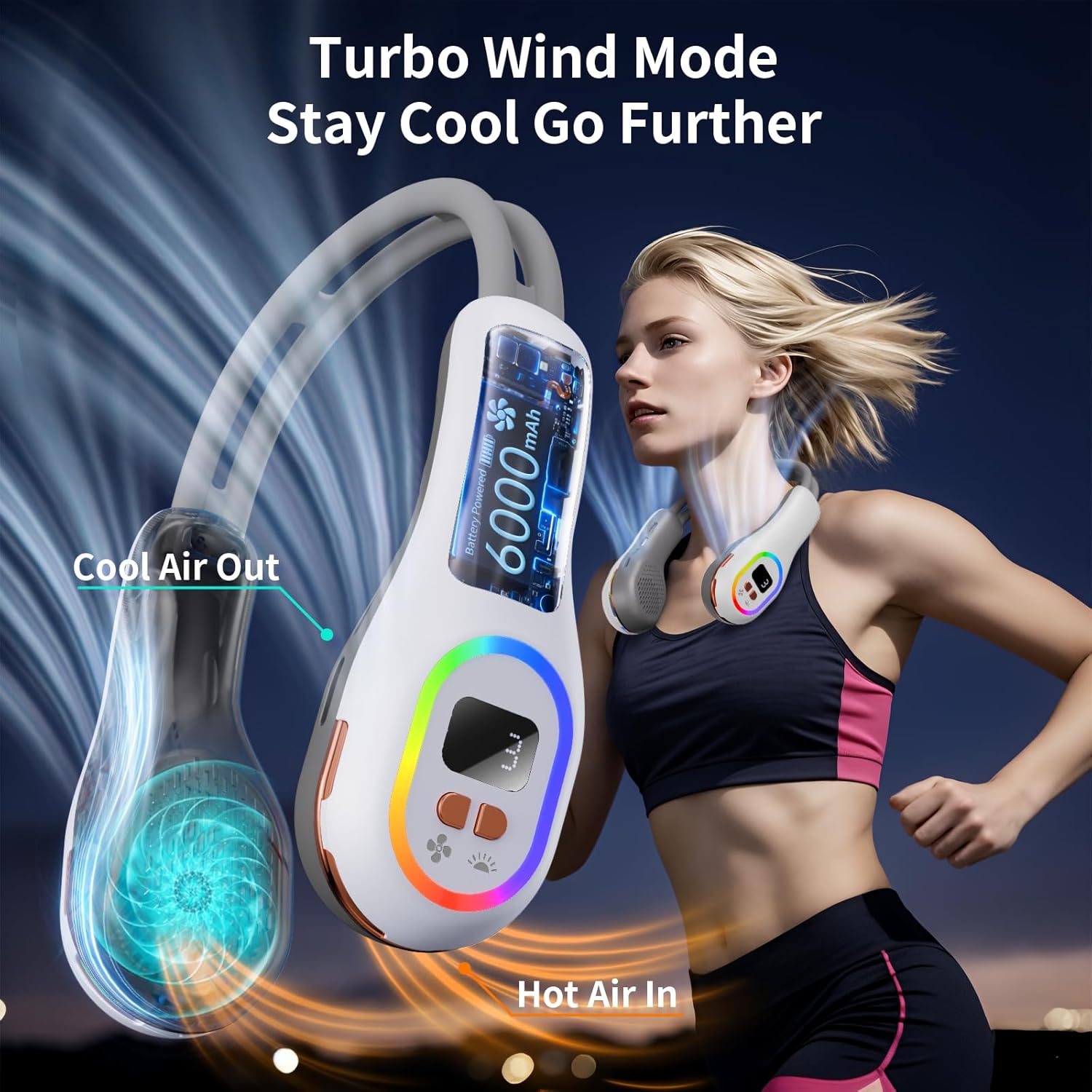 ✔ 6000 mAh lång batteritid – Njut av 4–15 timmars kontinuerlig kylning på en enda laddning, med valfritt LED-belysningsläge.