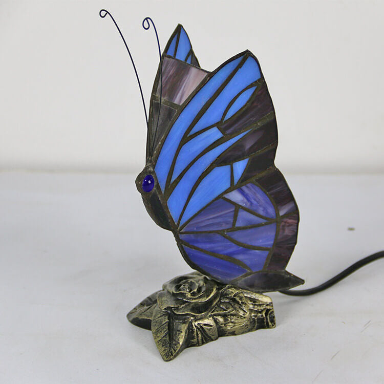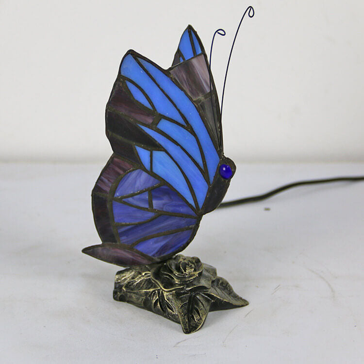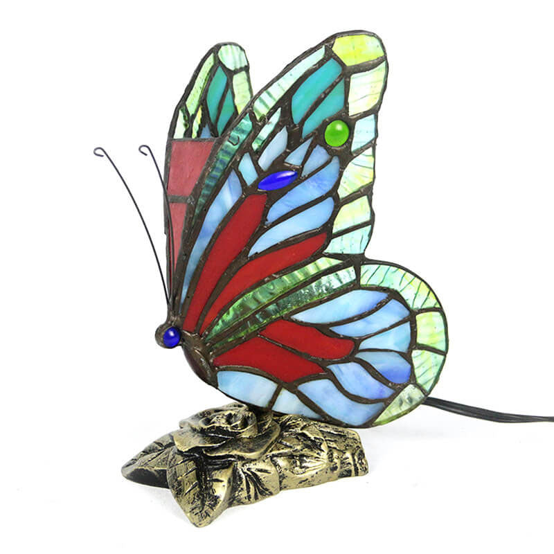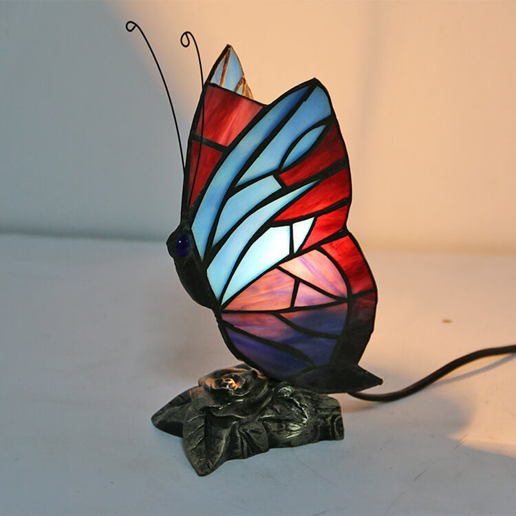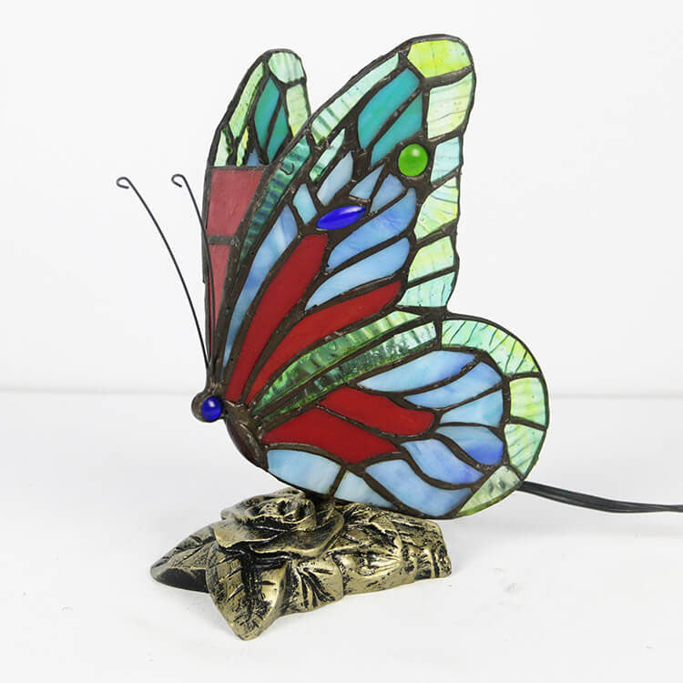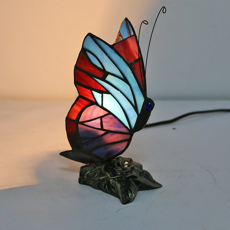 Hantverksfärgat glas fjärilsbordslampa – varm glöd accentljus