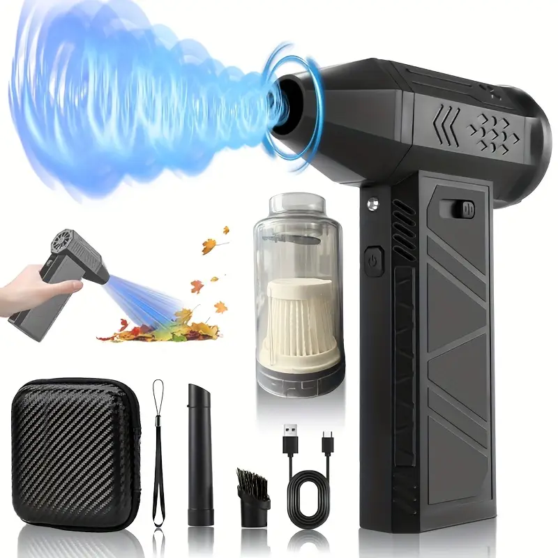 Frigör kraften hos Turbo Jet Air Cleaning! Denna högpresterande blåsare och dammsugare hanterar enkelt damm på elektronik, torkar fordon på sekunder och rensar utomhusutrymmen med lätthet. Utrustad med ett kraftfullt 6000mAh batteri för långvarig prestanda och USB-C-laddning för ultimat bekvämlighet. Kompakt, mångsidig och byggd för effektivitet - städa smartare, inte hårdare!