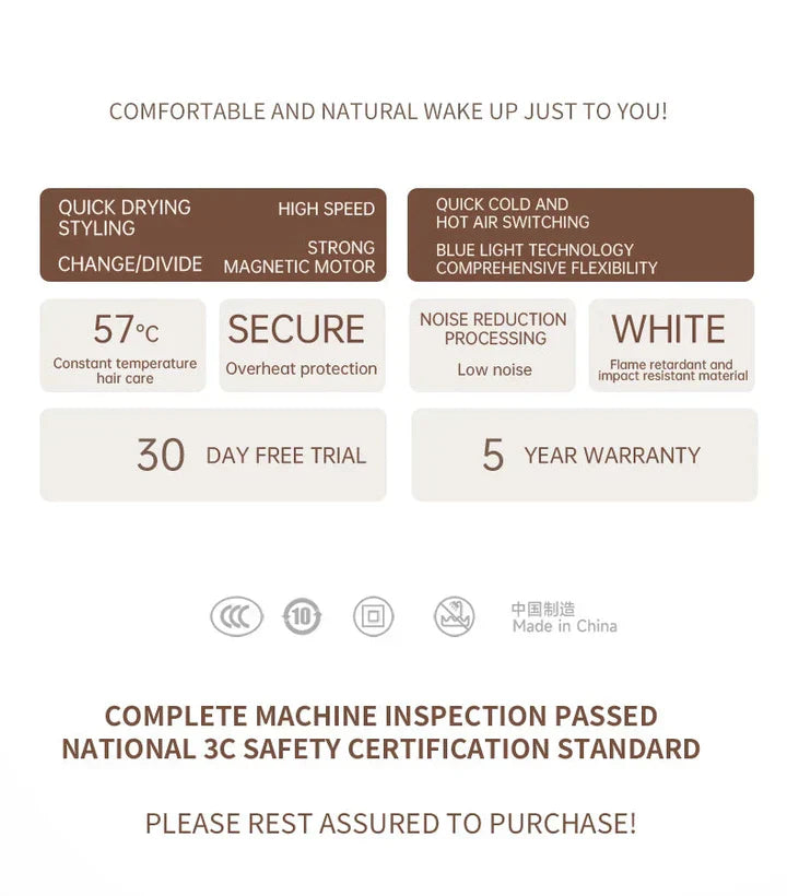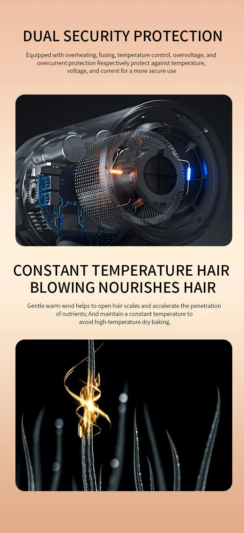 - 💨 Kraftfull 2400W: Torkar ditt hår på rekordtid, även vid tjockt eller långt hår.