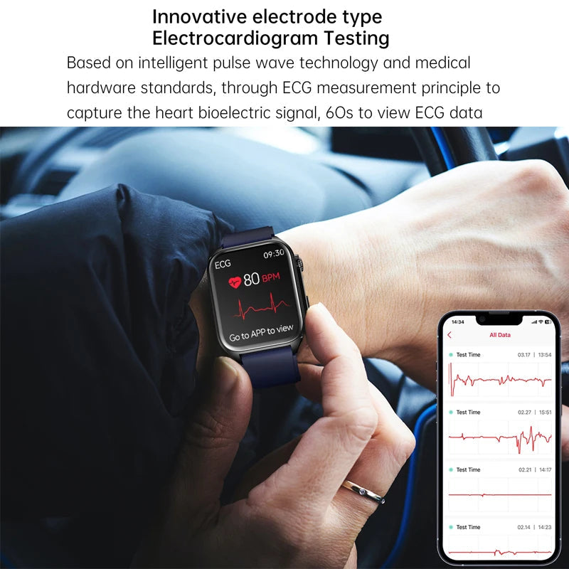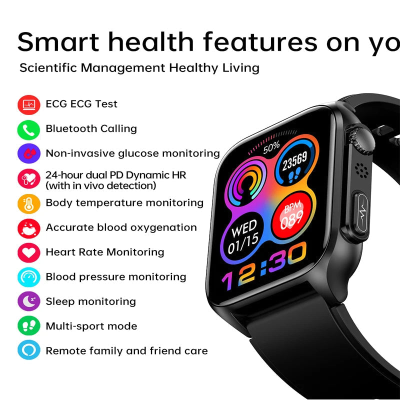 - Multi-hälsomonitoreringsfunktioner: Blodglukosmätning, ECG + PPG-testning, HRV-övervakning, blodtrycksövervakning, blodsyreövervakning, kontinuerlig kroppstemperaturövervakning, PTT-övervakning, sömnkvalitetövervakning, hälsopåminnelser, multi-träningsläge i en enda smartklocka!
