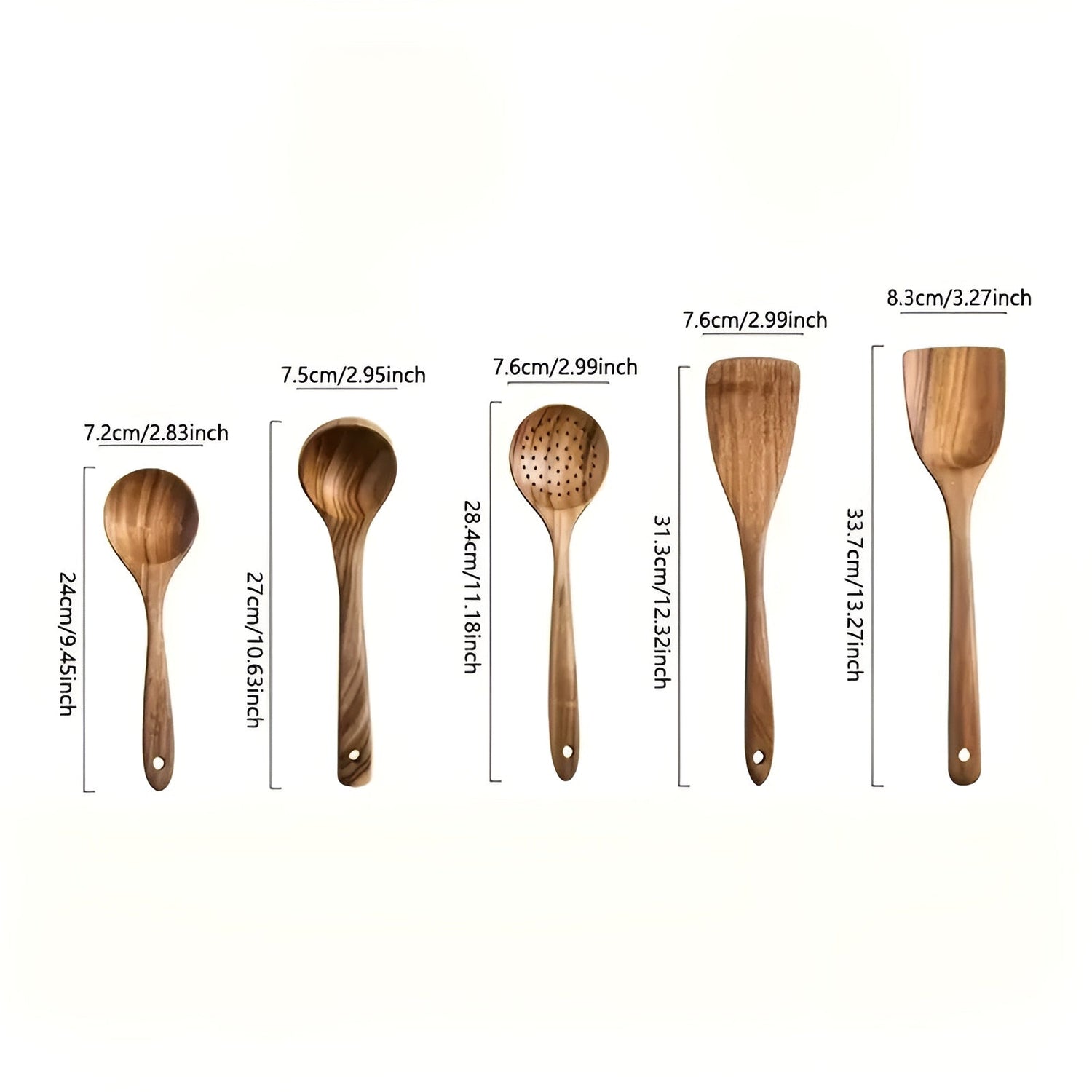 Upptäck vår 5-delade set med träredskap, perfekt anpassat för non-stick-pannor! Varje spatel och varje sked är tillverkad av högkvalitativt, naturligt trä – skonsam mot dina kokplattor och hälsosam för din familj. Lätt, hållbar och med varm vintage-känsla – detta set ger stylisch design och praktisk funktionalitet direkt in i din vardag. Gör matlagning till en upplevelse igen!