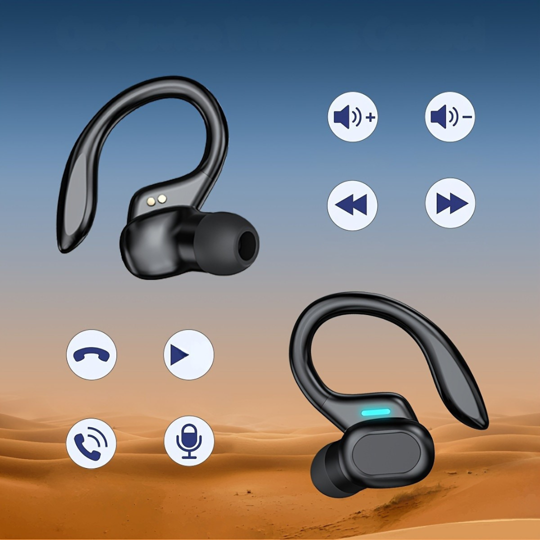 Drahtlose Kopfhörer für Sport und Fitness mit einem sicheren Ohrhaken Design, LED-Ladeanzeige und Berührungssteuerung. Diese Bluetooth-Ohrhörer verfügen über einen wiederaufladbaren Lithium-Akku und USB Typ-C-Ladung, was sie ideal für Workouts, Videoanrufe oder den täglichen Gebrauch macht. Mit Geräuschunterdrückung für Sprachansprüche gewährleisten sie kristallklaren Klang, wo immer Sie sind.