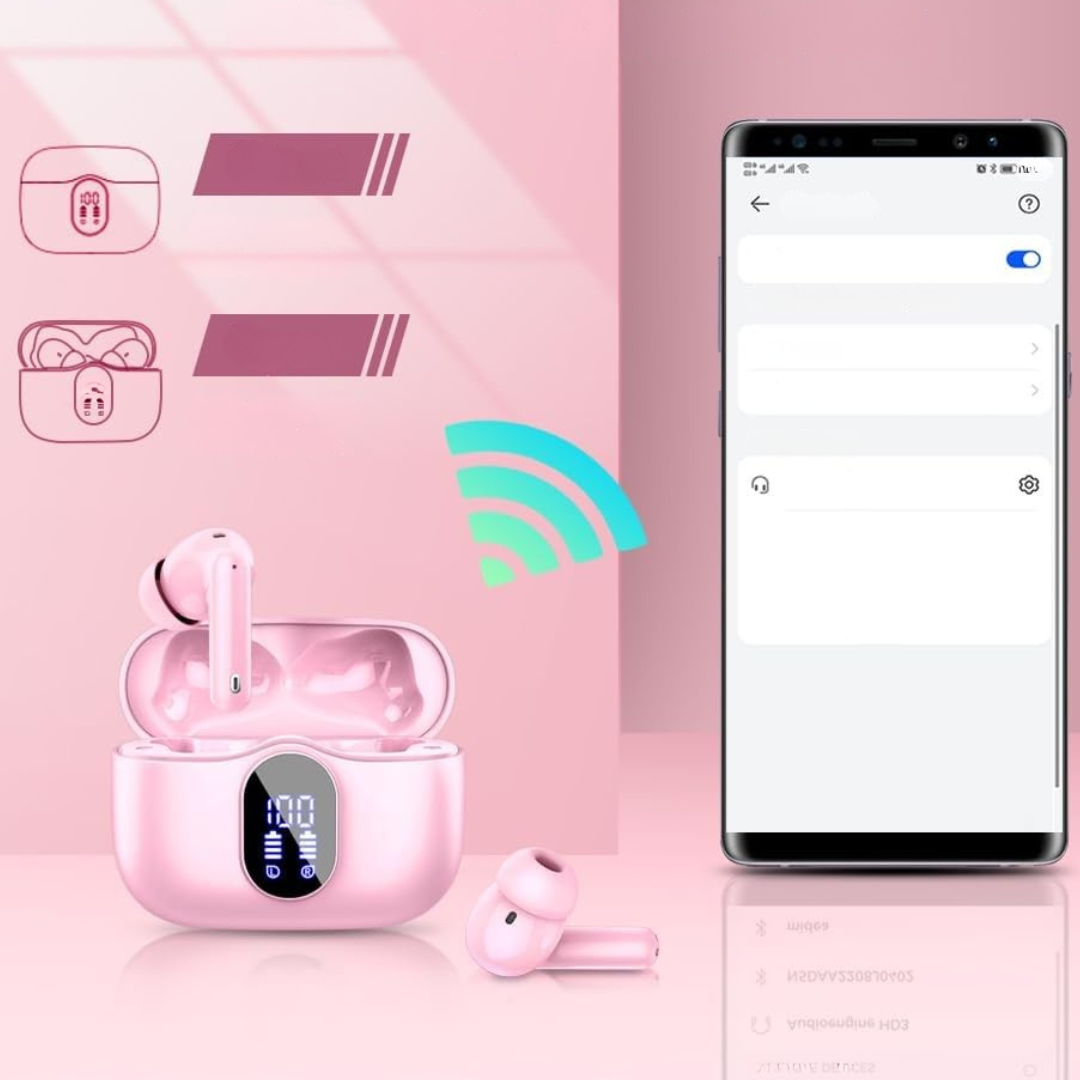 Njut av kraftfullt ljud och klara samtal med dessa trådlösa hörlurar som har avancerad Bluetooth 5.4-anslutning och brusreduceringsteknik. Designade för bekvämlighet och komfort erbjuder dessa öronsnäckor stabila anslutningar, klart ljud och upp till 36 timmars batteritid. Den kompakta laddningslådan har en ljus LED-display för att enkelt kontrollera energinivåer, medan den IP7-vattentäta designen gör dem idealiska för aktiva livsstilar, inomhus eller utomhus.