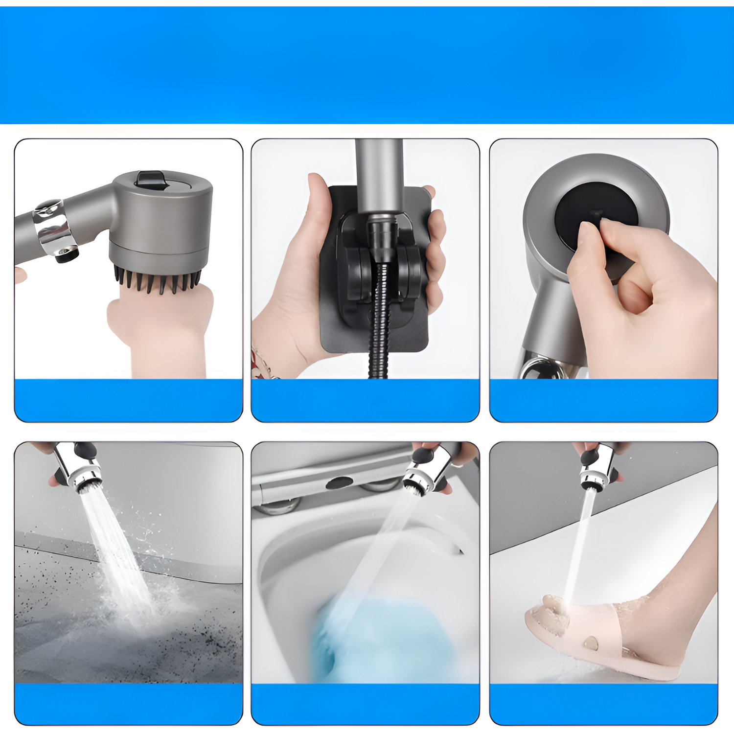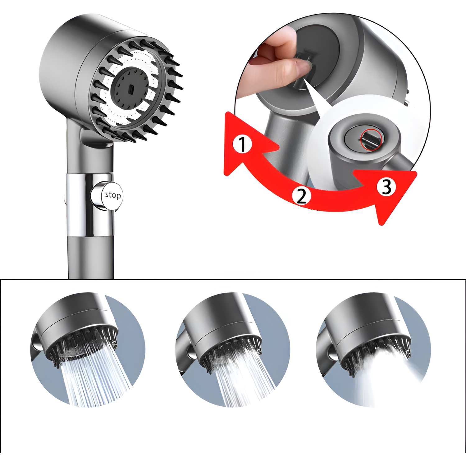 HydroPower Duschhuvud – Högtrycksduschhuvud med 3 lägen och massageborste