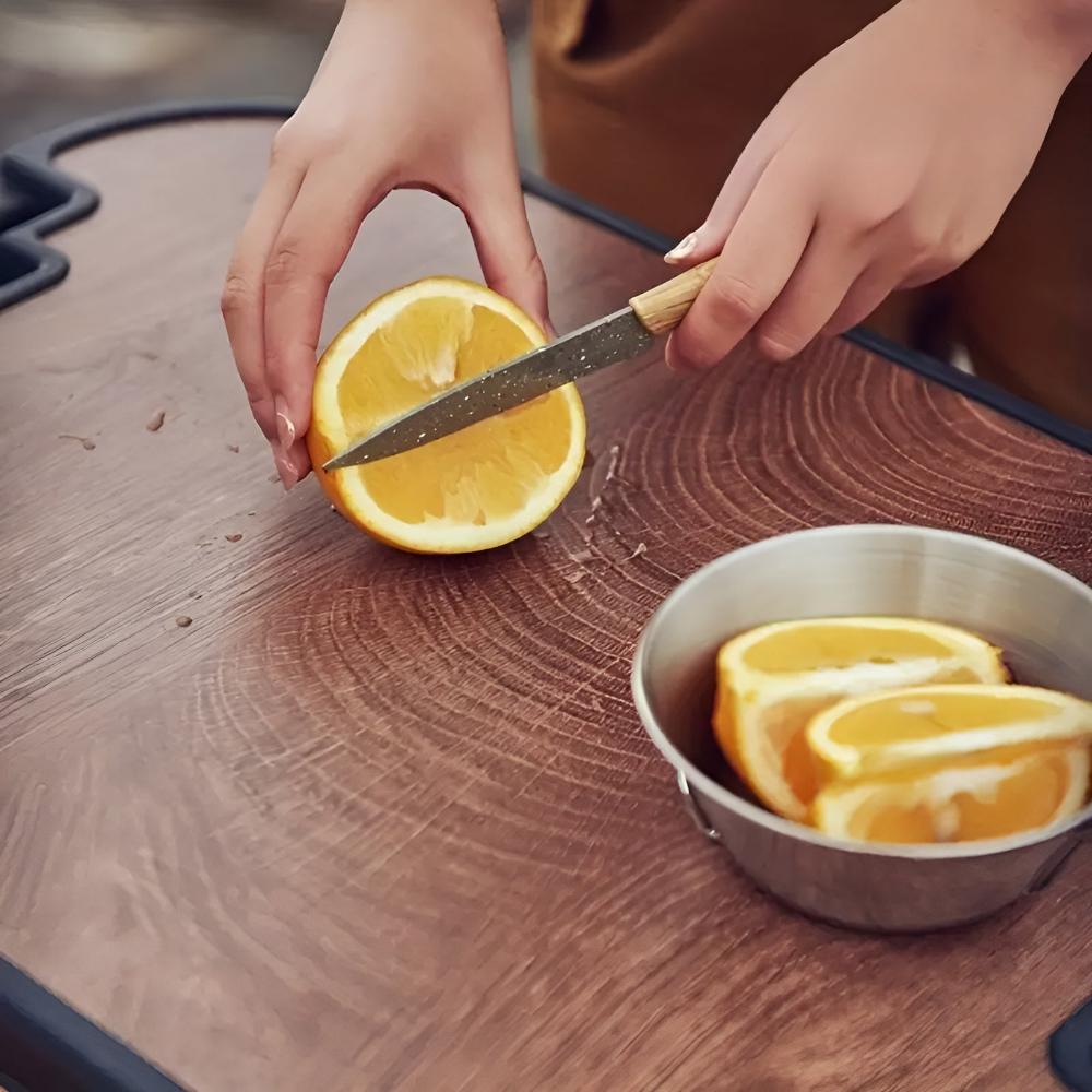Denna Fällbara Campinglåda är inte bara för förvaring. Toppocket fungerar som en slät yta, vilket gör den praktisk för att skära frukt och grönsaker. Den är snabb och enkel att ställa upp på bara två steg: lyft upp fästet och klicka det på plats. Denna mångsidiga design är perfekt för utomhus BBQ, picknick och mer.