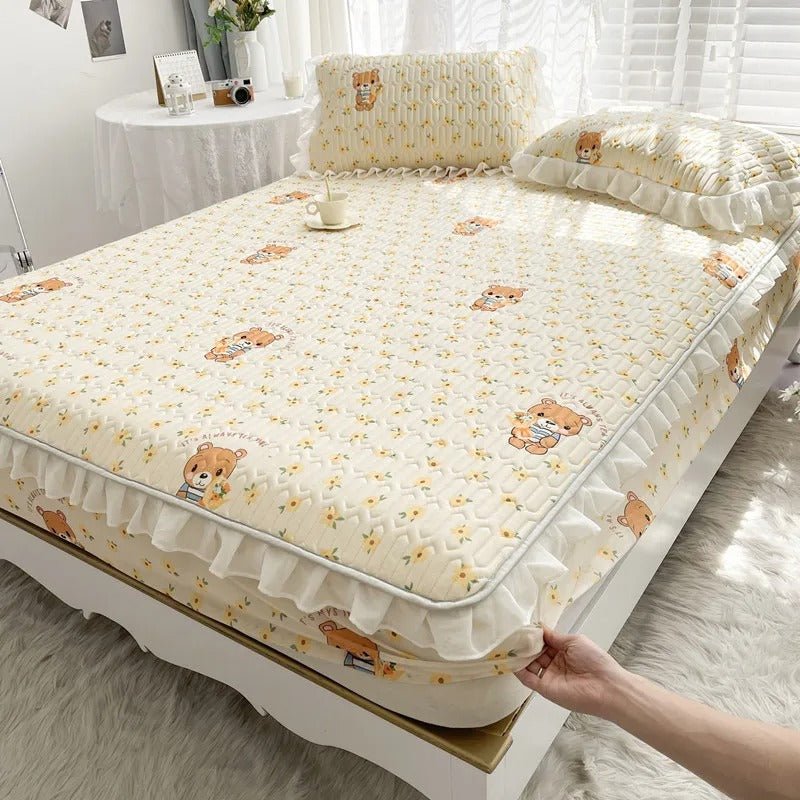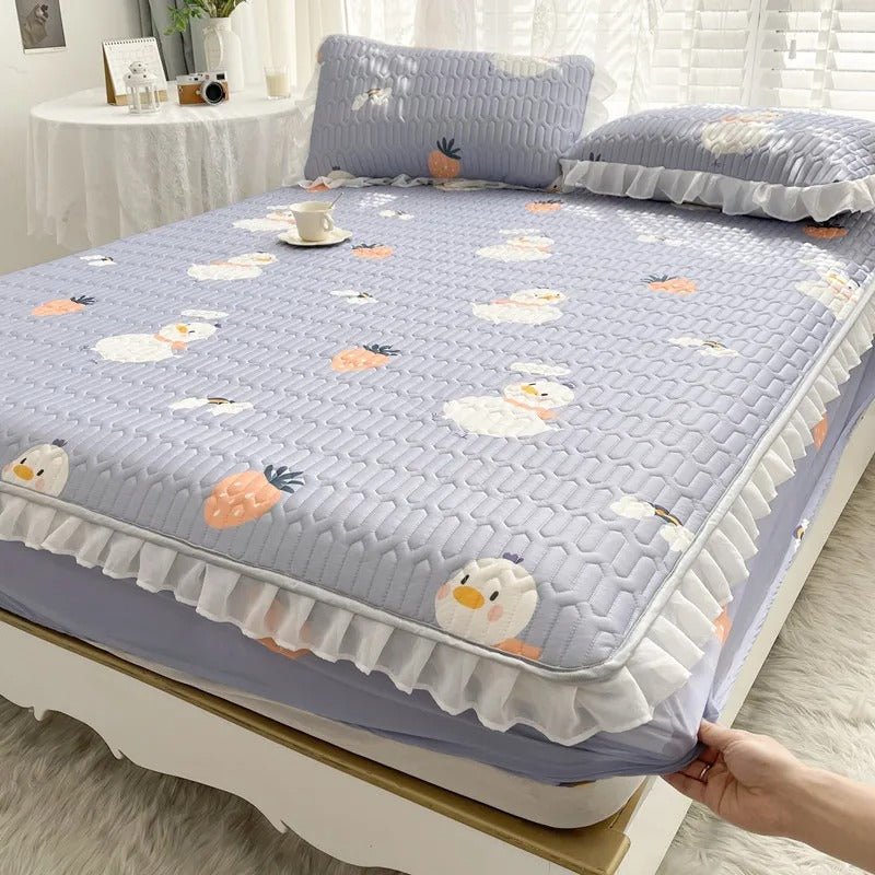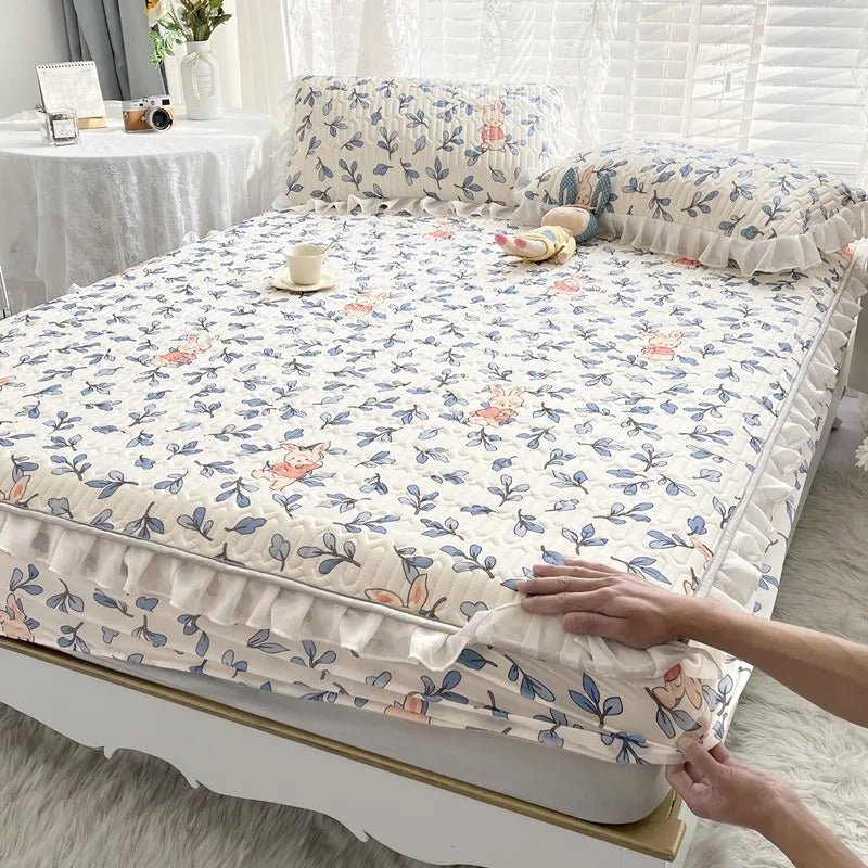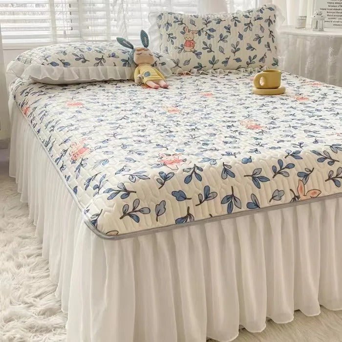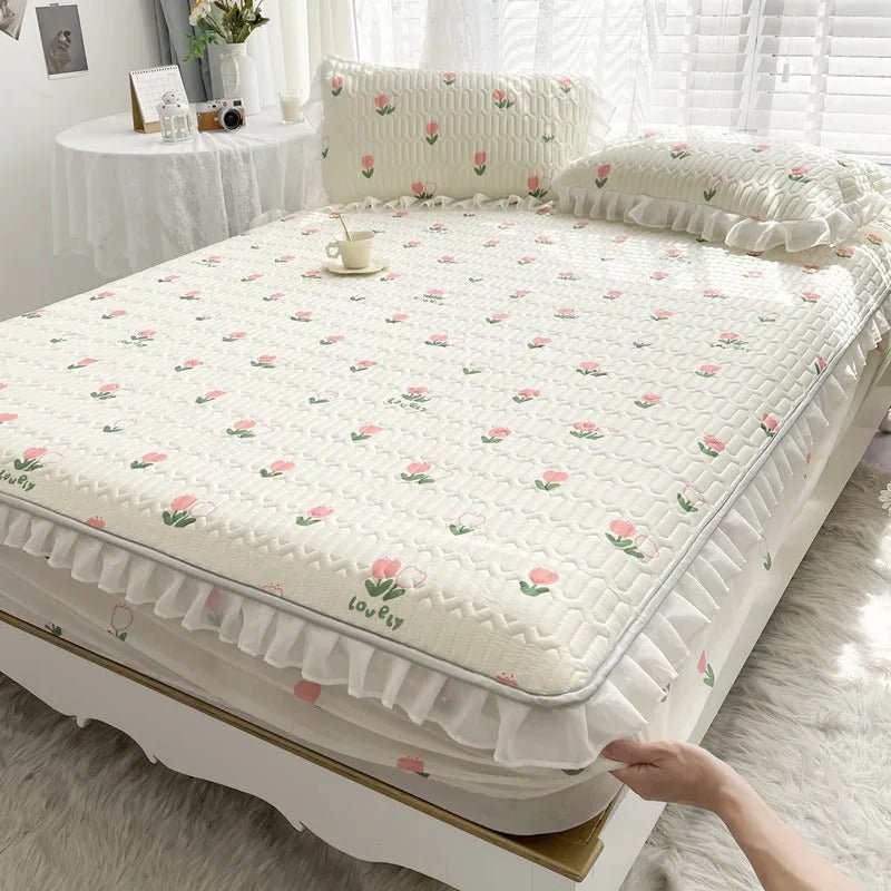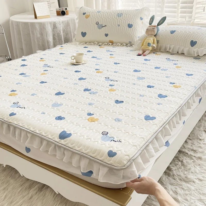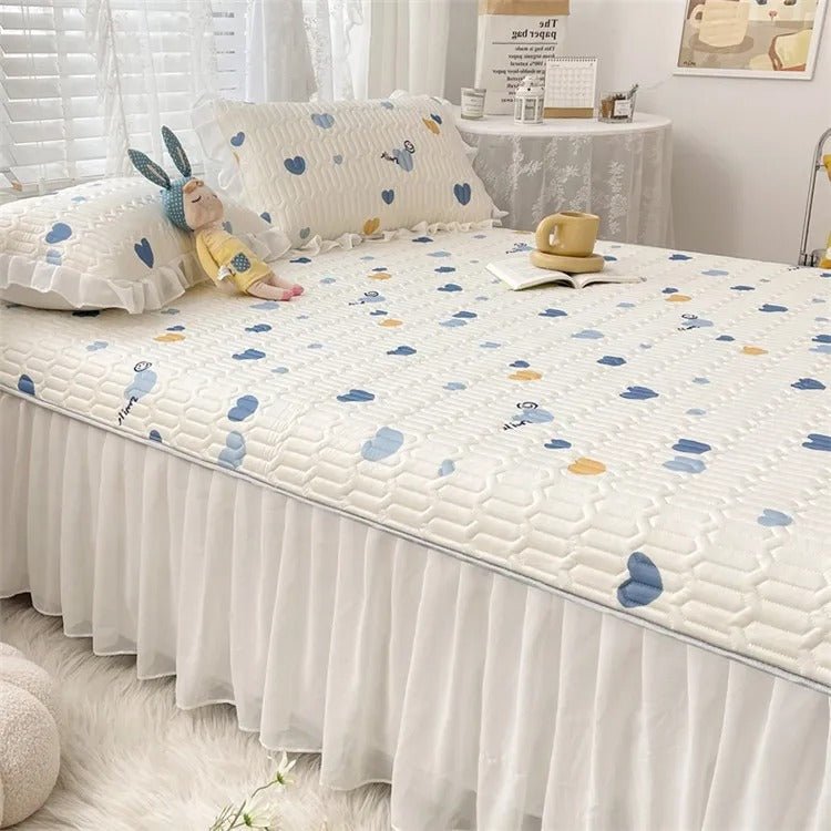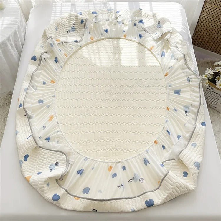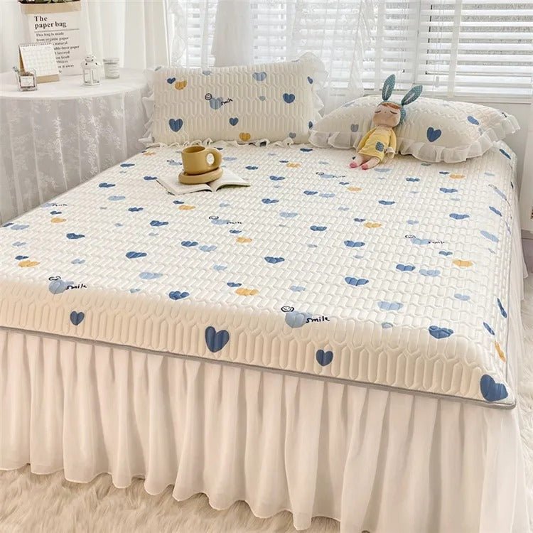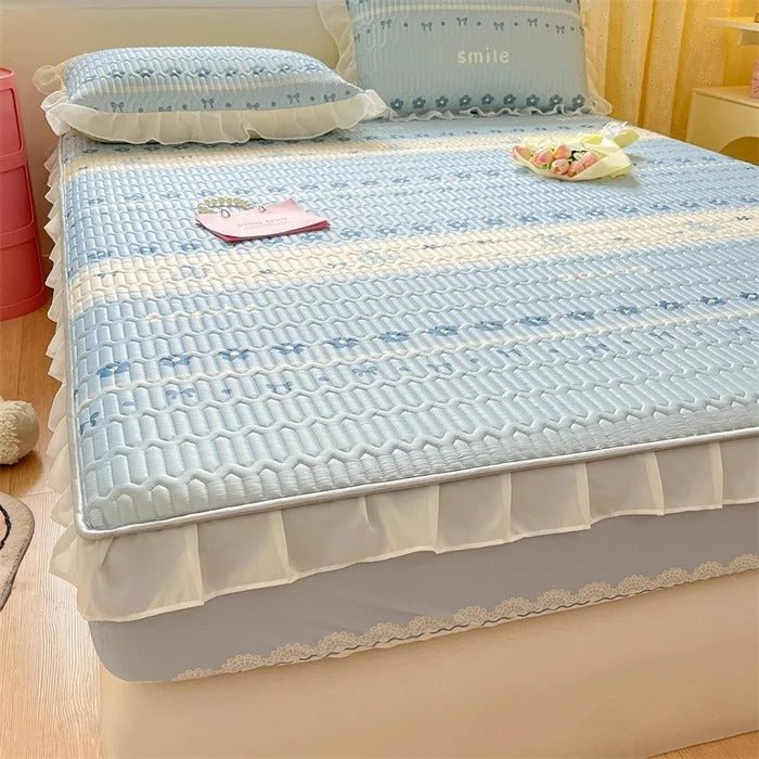 Ice Silk Latex Madrassset - Spetsstil Ice Silk Matta, Sängklädsel, Kjolstil, Halkskydd Fast Madrass Skyddande Täckning