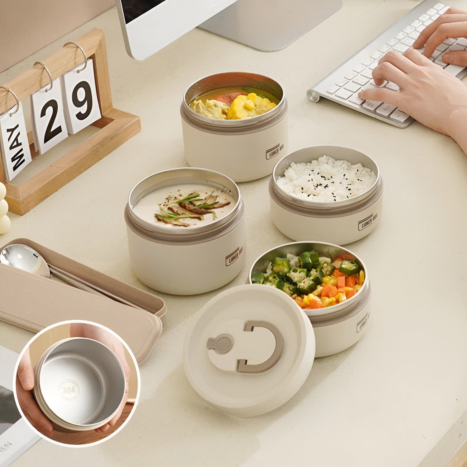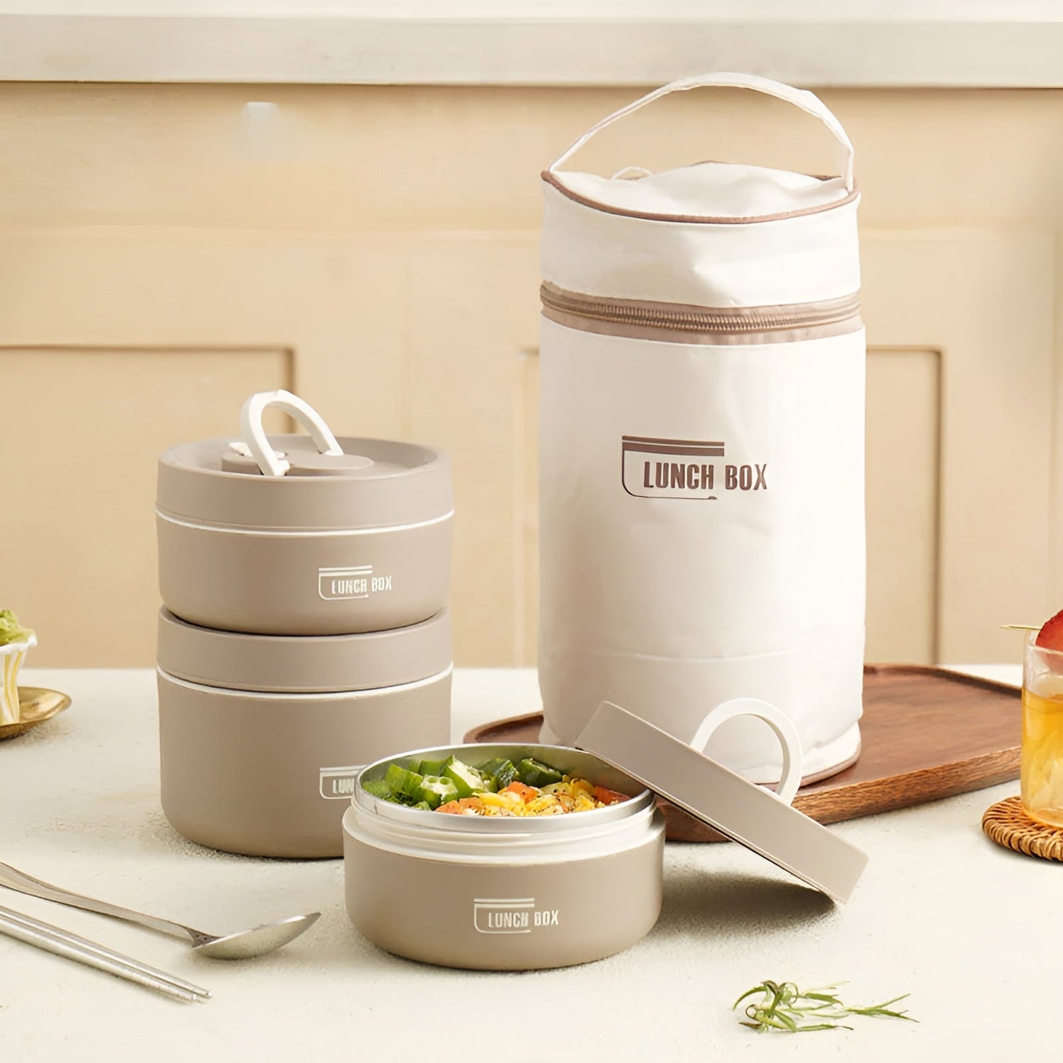 Då är denna isolerade lunchlåda med flera fack precis vad du behöver! Den håller dina måltider färska, knaprig och läckagefri, oavsett om du är på kontoret, i skolan eller på språng. Med det praktiska bärhandtaget och den matchande väskan är den lätt att transportera – och ser också modern ut. Tack vare sin mångsidighet är den perfekt för alla som vill vara väl förberedda – utan att kompromissa med stil eller funktion.