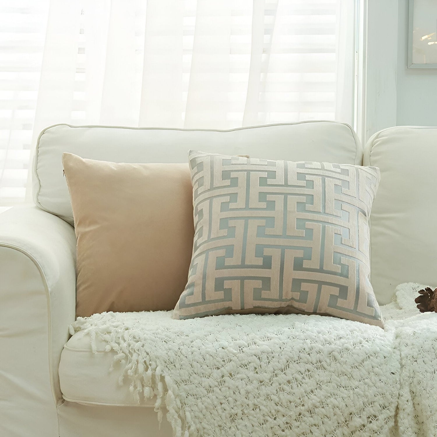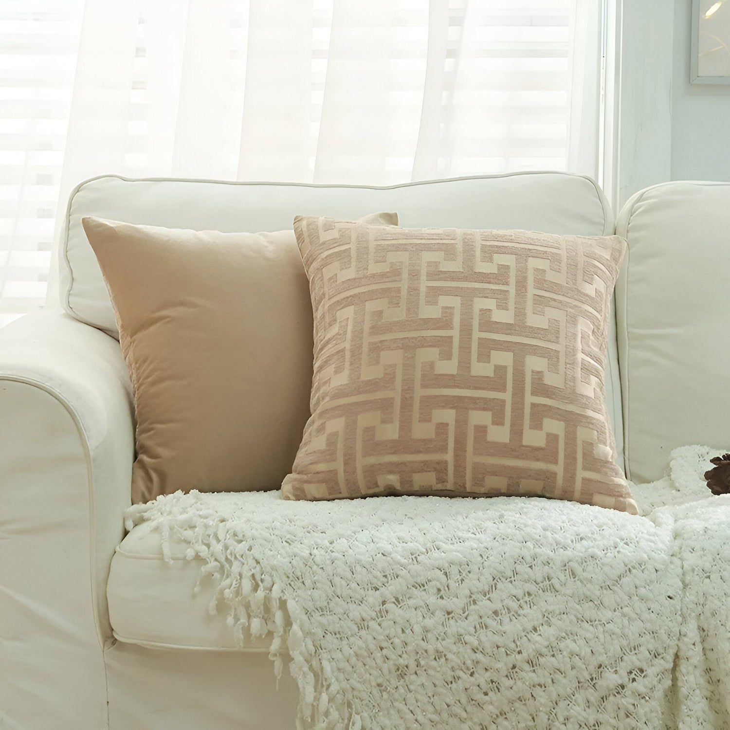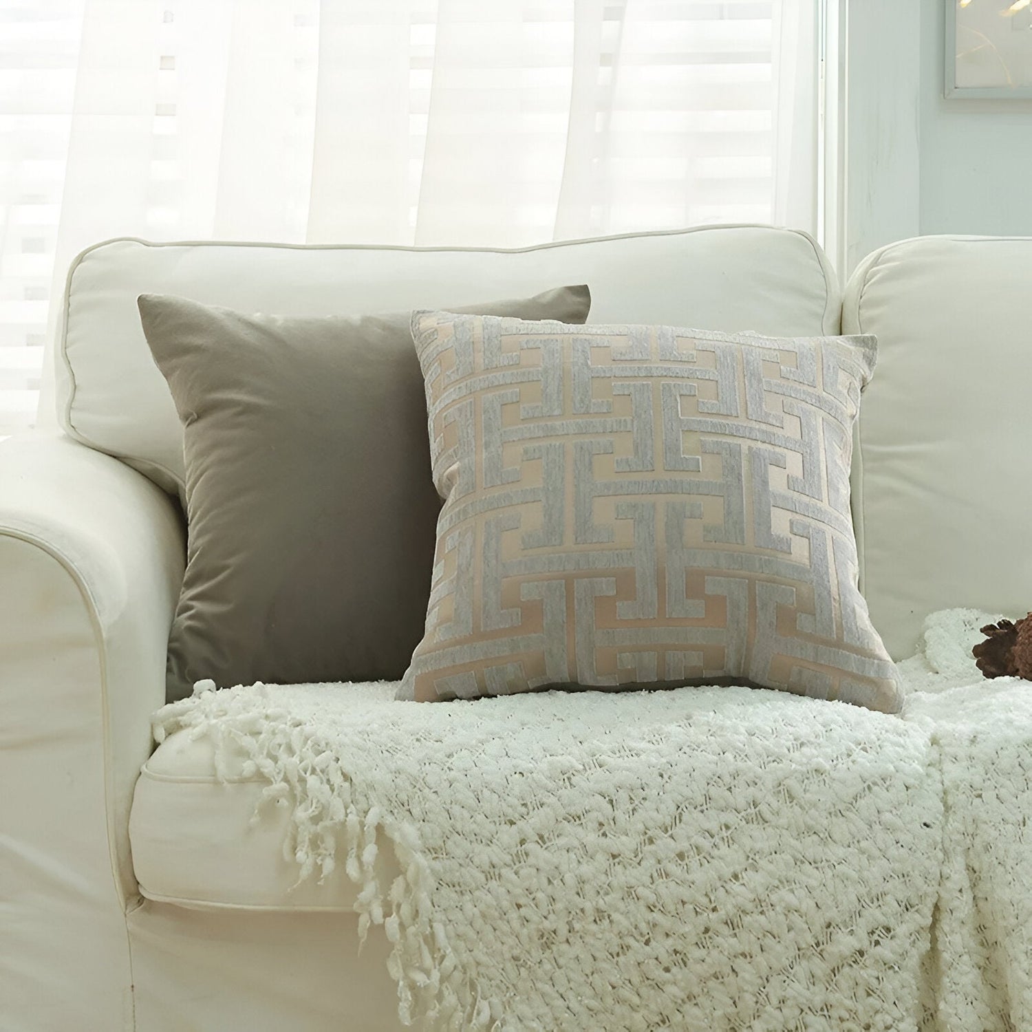 Jacquard Chenille Kuddöverdrag - Röd Guld Broderad Design