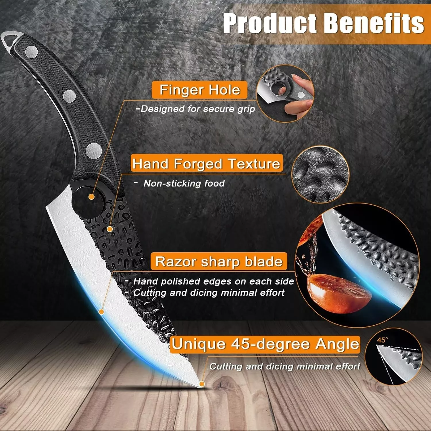 Tillverkad av högkvalitativt rostfritt stål, motstår kniven rost och korrosion, och bibehåller sin skarpa egg under lång tid. Den hållbara konstruktionen garanterar tillförlitlighet i åratal av konsekvent prestanda i ditt kök.