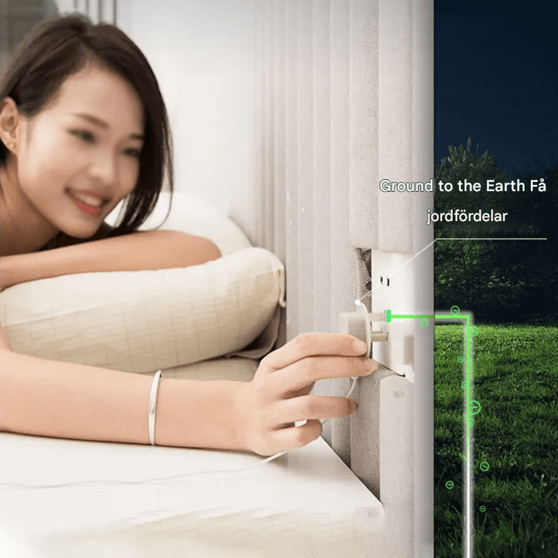 Anslut lakanet till "jordningsuttaget" på ett jordat 3-stiftsuttag. Innan du kopplar in din jordningsprodukt, se till att uttaget är jordat genom att använda en uttagskontrollant.