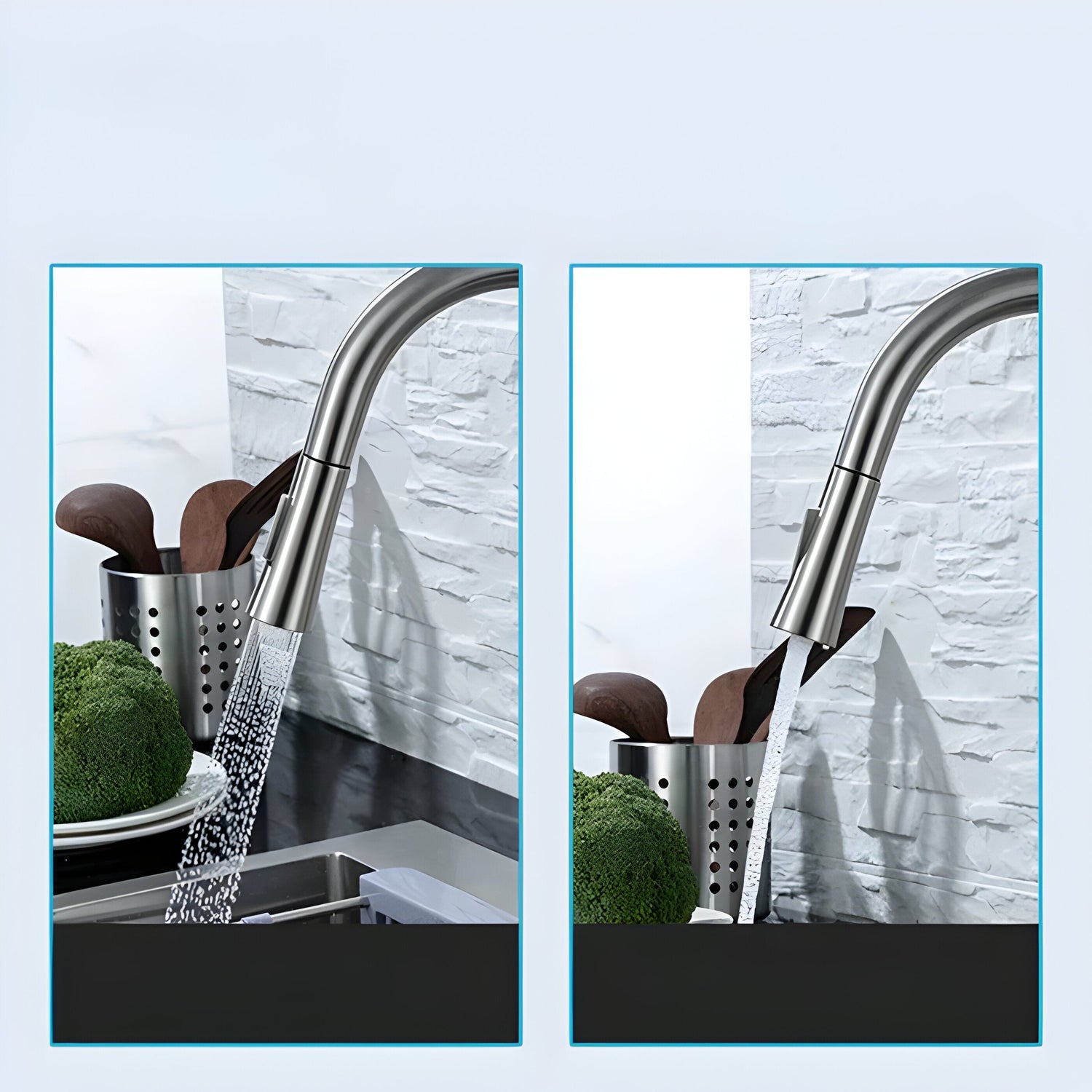 Den sensorblandare för köket för in den senaste sensortekniken direkt i ditt kök. Med en enda beröring styr du vattenflödet – idealisk för rena händer när du lagar mat. Ingen mer besvärlig hantering av kranar – denna kran känner av vad du behöver. Perfekt för alla som älskar komfort, hygien och modern design. Förvandla din diskho till ett intelligent kökområde.