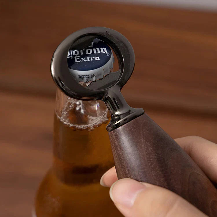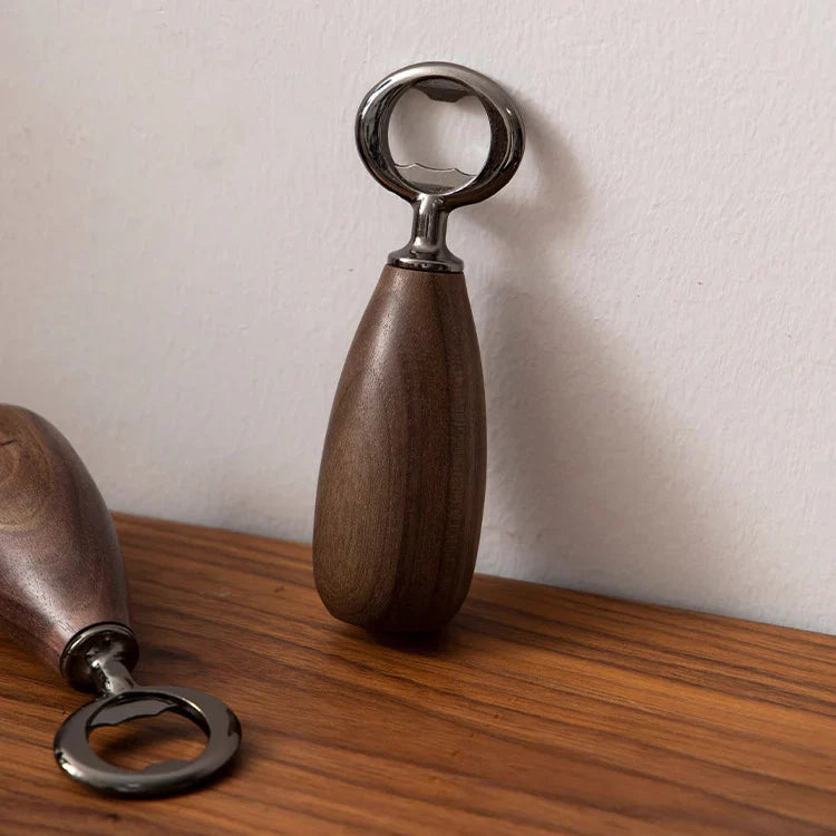 Denna eleganta kapsylöppnare kombinerar tidlös design med hög funktionalitet. Tillverkad av hållbart valnötsträ och rostfritt stål, erbjuder den ett bekvämt grepp och en stilren estetik som passar perfekt i varje kök eller bar. Den robusta konstruktionen garanterar långvarig hållbarhet, medan det ergonomiska handtaget gör det enkelt att öppna flaskor med minimal ansträngning. En praktisk och dekorativ detalj för alla som uppskattar högkvalitativa köksredskap.