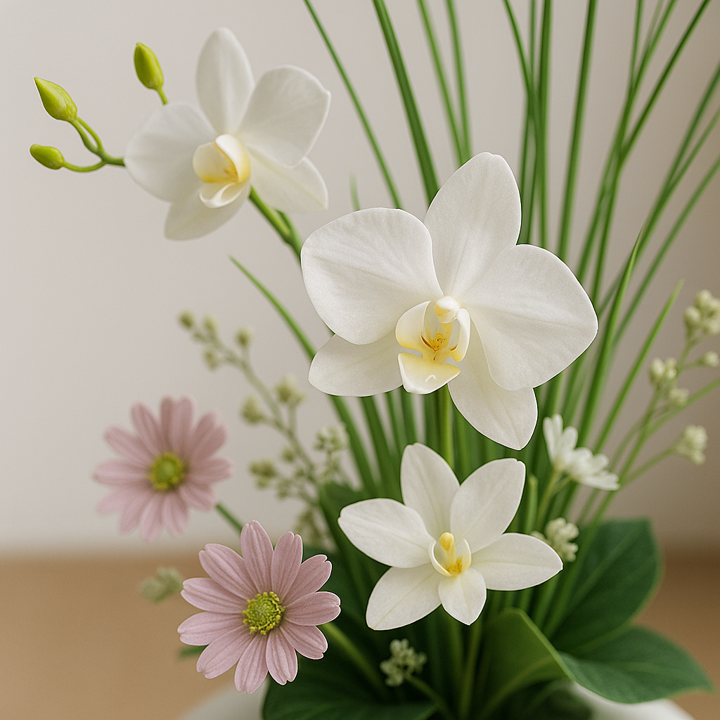 - Inbyggd blommavisa: Inkluderar realistiska faux orkidéer för varaktig elegans