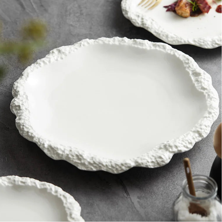 Keramiska MiddagsTallrikar Set | Texturerad Modern Mat med Organisk Kants | Brick by Brick London