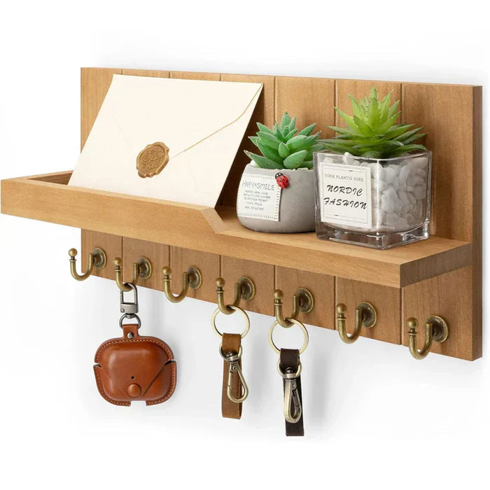 KeyHaven – Nyckelorganisator i trä med hylla, snygg väggförvaring för nycklar och post