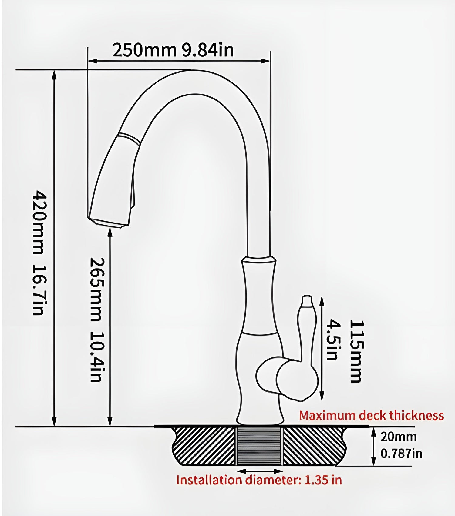 Kökskranen med utdragbar duschhuvud kombinerar modern design med fantastisk funktionalitet och gör dina dagliga uppgifter i köket enklare och trevligare. Den 360° roterande kranen och utdragbara munstycket erbjuder maximal flexibilitet, medan den eleganta ytbehandlingen förhöjer varje köksinredning. Oavsett om du skalar grönsaker eller fyller stora kastruller, så klarar du allt enkelt med denna kran!
