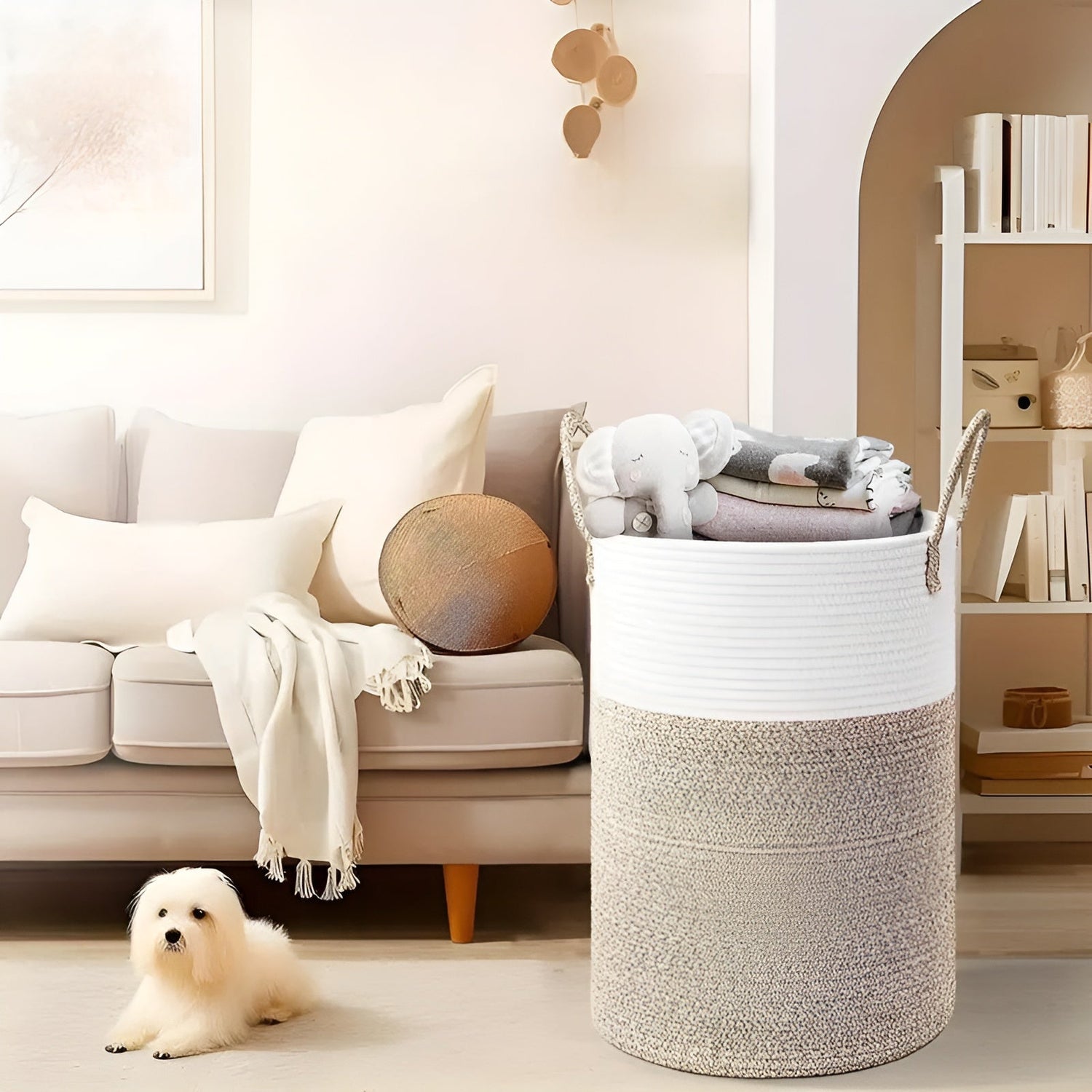 ClutterCatcher Korgen kombinerar modern design med hög funktionalitet. Oavsett om det handlar om tvätt, leksaker eller andra hushållsartiklar – denna vikbara förvaringskorg är verkligen mångsidig. Tillverkad av slitstark bomullsrep, passar den elegant in i varje inredning och erbjuder mycket förvaringsutrymme för dina dagliga behov. Slut på oordning – organisera ditt hem med lätthet!