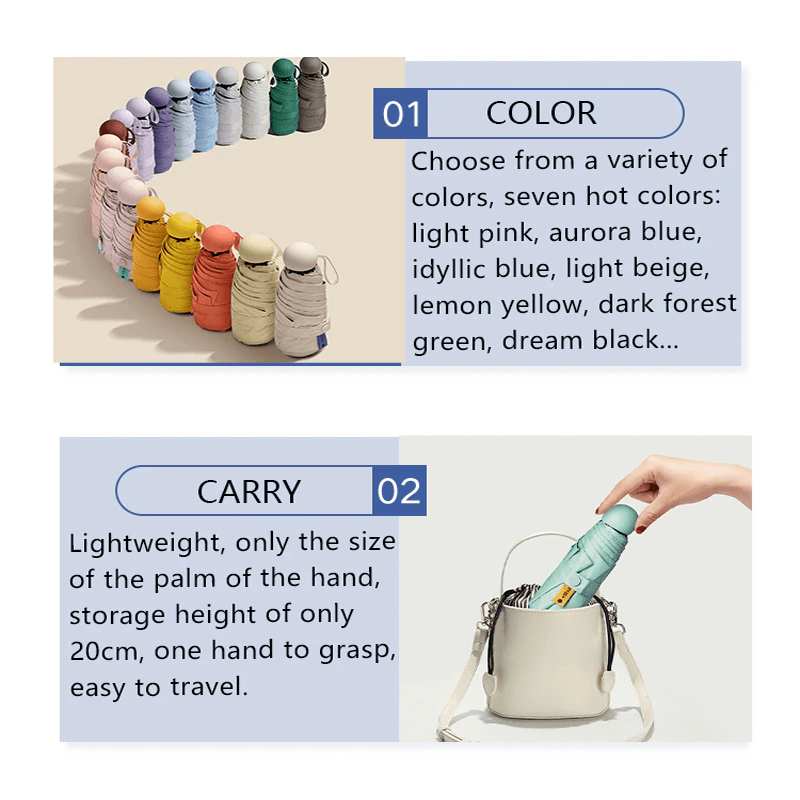 ✅ Alltid redo, var du än går - Upplev den oöverträffade bekvämligheten med vårt paraply. Dess lätta och kompakta design är skräddarsydd för små väskor och blir en nödvändig följeslagare på dina resor.