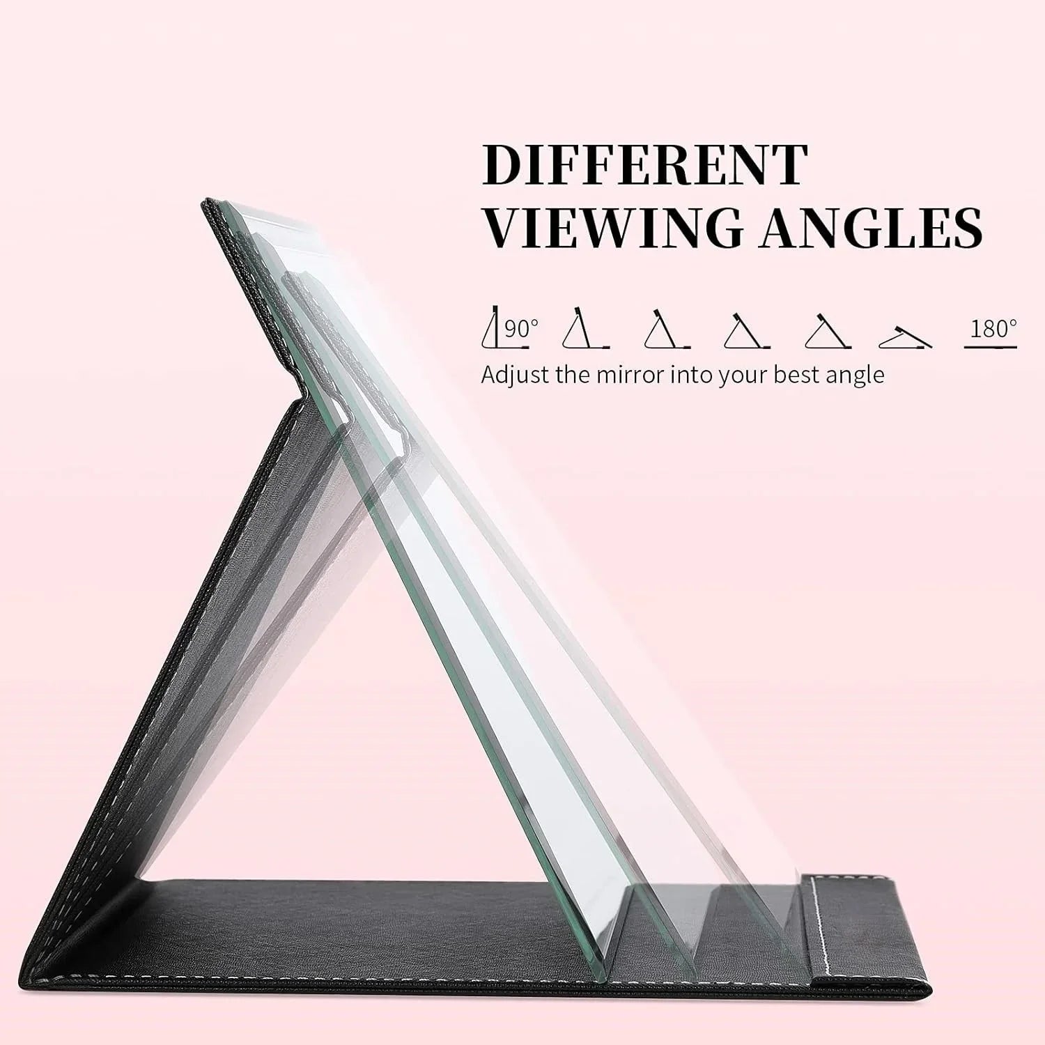 Denna spegel är inte bara praktisk för smink, utan också idealisk för hudvård, insättning av kontaktlinser eller till och med för noggrant plockande av ögonbryn. Genom de justerbara vinklarna kan du anpassa den perfekt efter dina behov – från frontal till liggande.