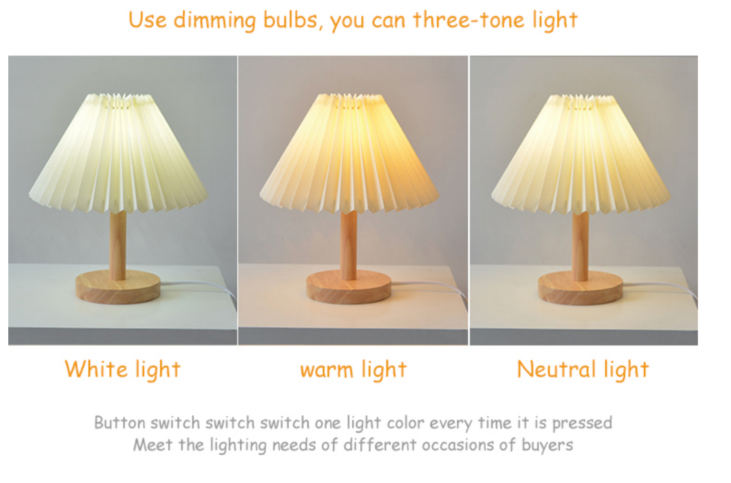 - Material: Solid träbas med en plisserad tygskärm