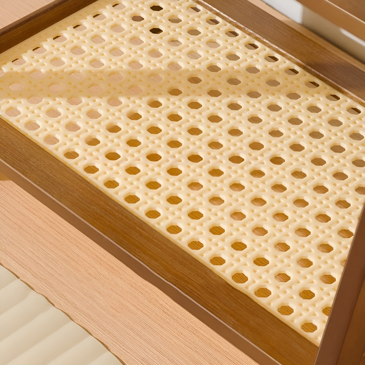 Det bambukryddstället är inte bara funktionellt, utan också en verklig ögonfångare. Det utmärker sig genom sin naturliga trälook och den fin bearbetningen. Tack vare de kompakta måtten passar det på varje bänk eller i små nischer utan att vara i vägen. Materialet är vattenavvisande och lätt att underhålla – perfekt för användning i köket. Observera att alla bambuprodukter kan ha naturliga variationer, eftersom det är ett organiskt material.