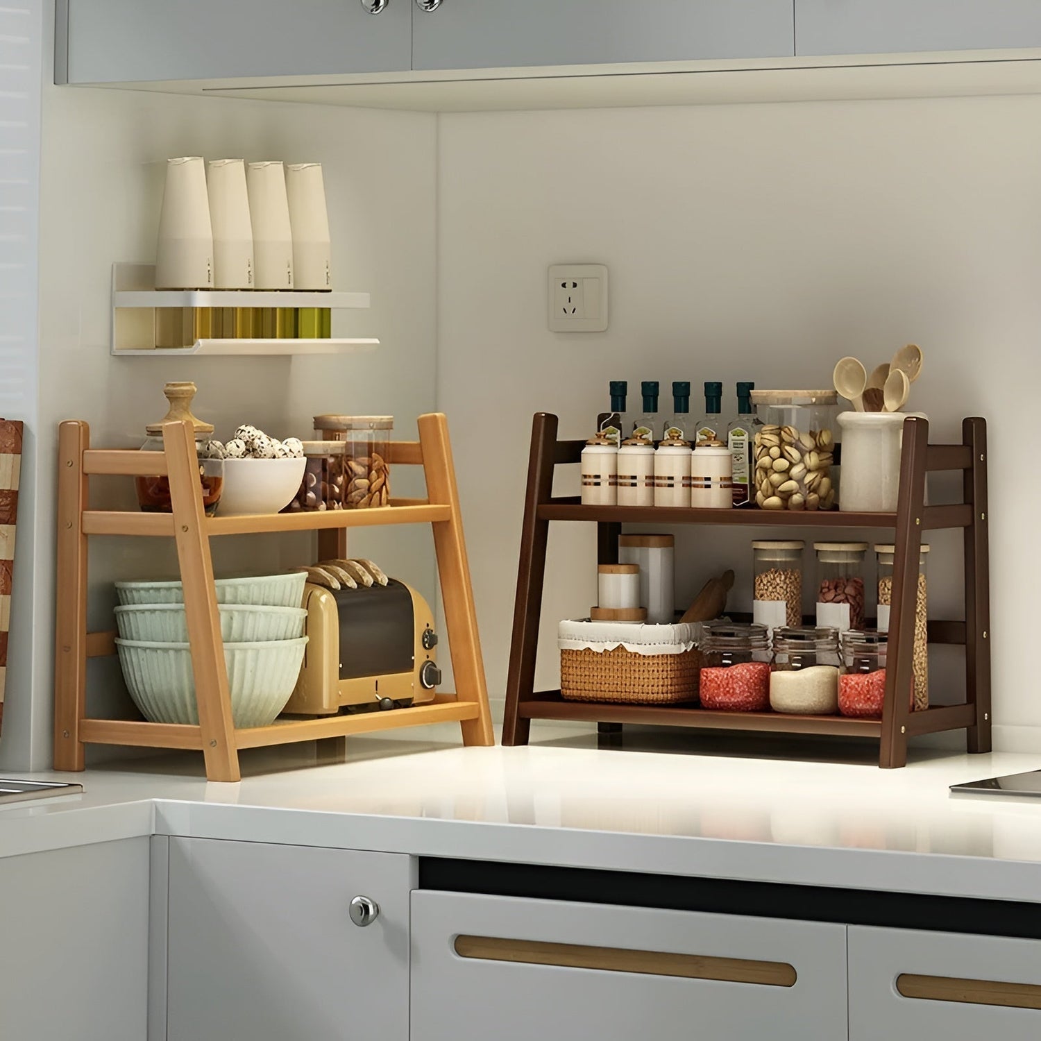 Kryddhylla i bambuimitat – 2-vånings kökshylla | Ideal för bänkskiva & kaffehörna