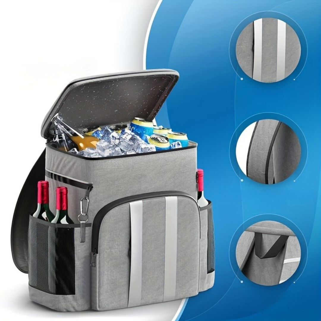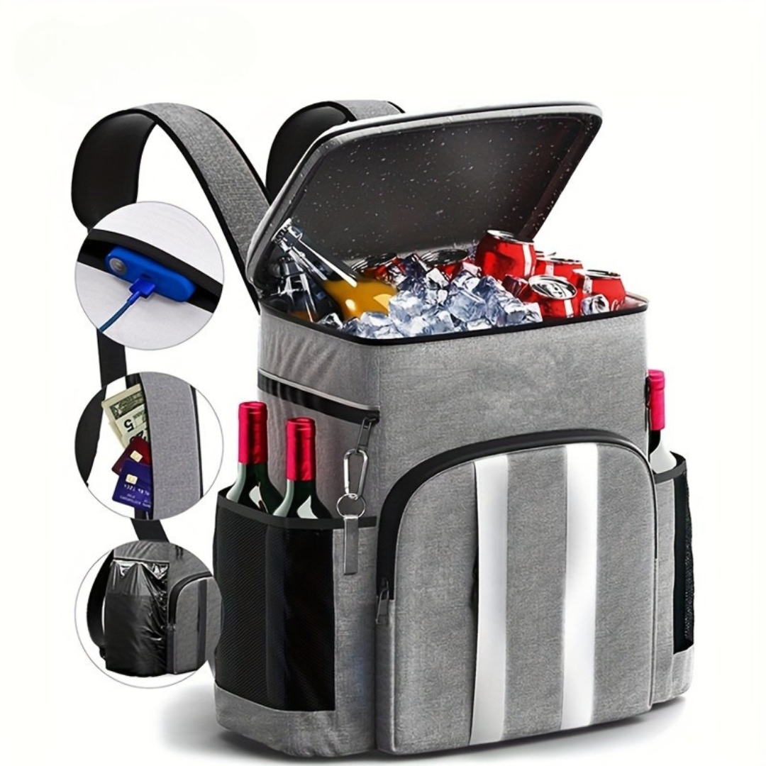 Håll dig sval och organiserad med denna isolerade ryggsäck, perfekt för att hålla dina saker kalla och färska under campingturer, picknickar eller äventyr utomhus. Tillverkad av högkvalitativ Oxford-tyg, erbjuder denna ryggsäck en läckagesäker design och flera fack för att enkelt bära drycker, snacks och andra nödvändigheter samtidigt som de hålls vid rätt temperatur.