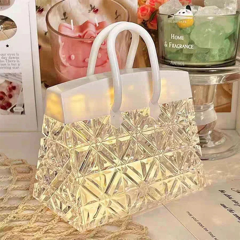 Ljus möter lekfullhet med en lampa som även fungerar som en minnessak. LED Akryl Väska Lampan blandar retro charm med modern effektivitet, och förvandlar vardagliga utrymmen till mysiga, inbjudande hörn. Dess väskformade silhuett glittrar med ett mjukt, ambient sken, vilket gör den till en omtänksam gåvoidé och en stilren accent för sovrum, lekrum eller nattduksbord.