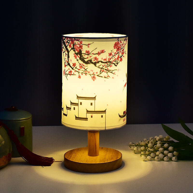 Material: Sockel av naturligt trä med en lampskärm av premiumtyg