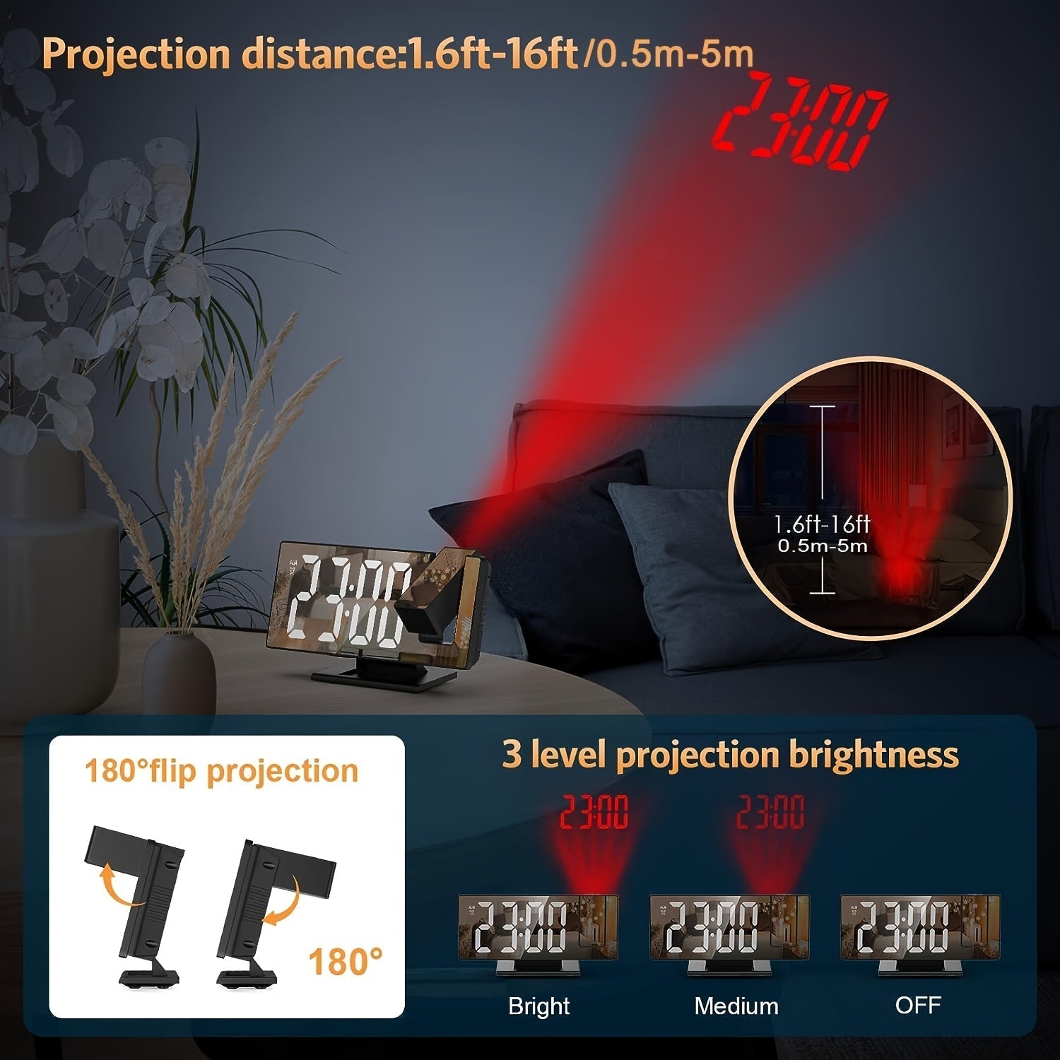 LED-projektionsväckarklocka med 180° justerbar projektion – Klar display och snooze-funktion för sovrum eller kontor