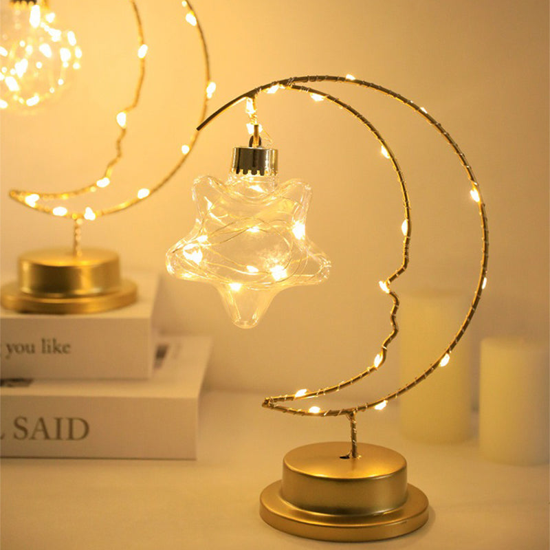 Den månfomade LED-nattlampan med gnistrande stjärnor och en delikat fairy lights är den perfekta lösningen för den som vill lysa upp sitt sovrum, vardagsrum eller barnrum med ett mjukt, romantiskt sken. Oavsett om den används som en lugnande nattlampa för barn eller som en stilfull dekoration för ditt hem – denna LED-dekorationslampa ger värme och en avslappnad atmosfär i varje rum.
