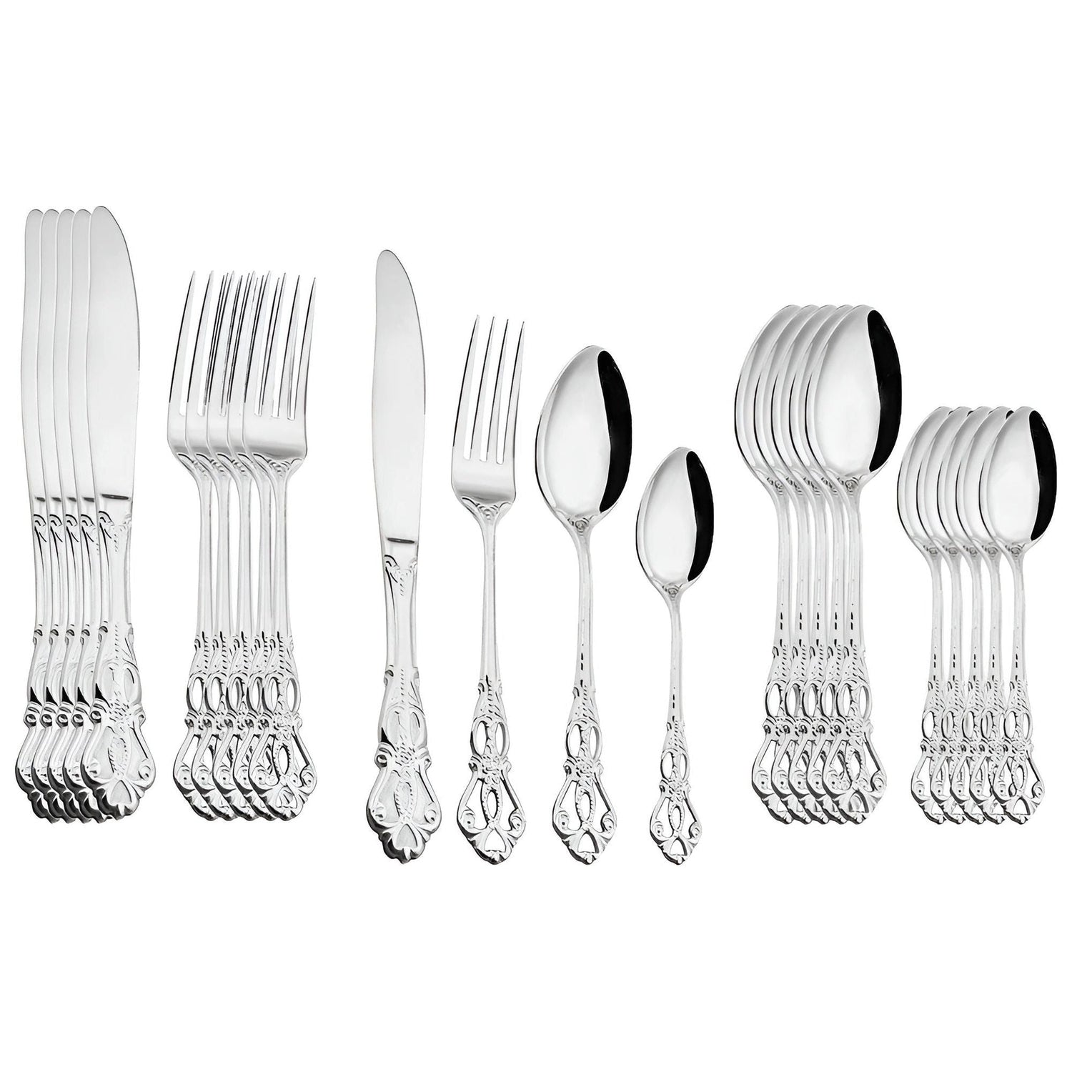 - Antal delar: 24-delad uppsättning (6 gafflar, 6 knivar, 6 skedar, 6 teskedar)