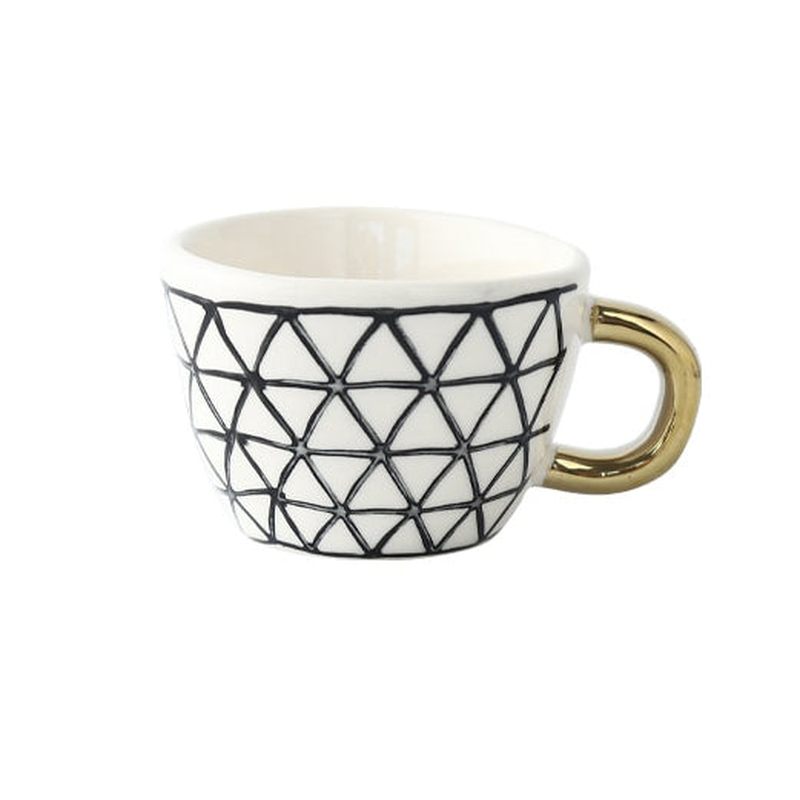 Gör varje kaffepaus till ett stilfullt ögonblick med LuxeGeo, den keramiska muggen som kombinerar modern design med lyxig detaljrikedom. Med sin geometriska form och gyllene handtag blir denna mugg inte bara ett bruksföremål – utan ett statement på ditt bord.