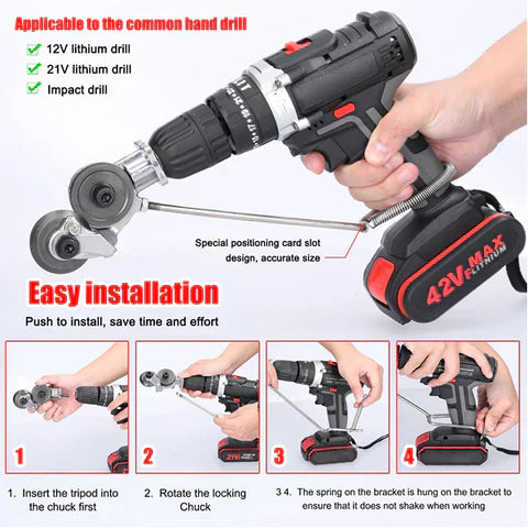 Transformera din standard elektriska borrmaskin till ett kraftfullt verktyg för metallskärning med Metallskärningsadaptern. Utformad för precision, portabilitet och användarvänlighet, ger detta kompakta tillbehör mångsidighet och effektivitet till din verkstad eller arbetsplats.