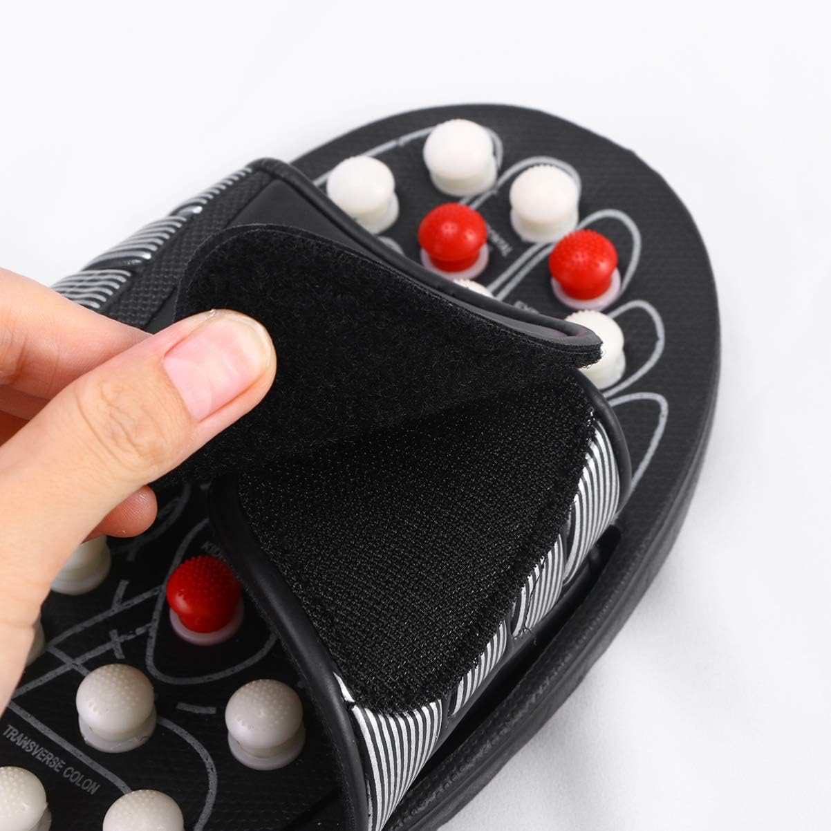 Massagesulorna är utformade med små upphöjningar som trycker mot reflexzoner i foten. Dessa zoner är kopplade till olika organ och delar av kroppen – precis som vid traditionell reflexologi. Du kan använda tofflorna stående, gående eller sittande i 10–30 minuter per tillfälle.