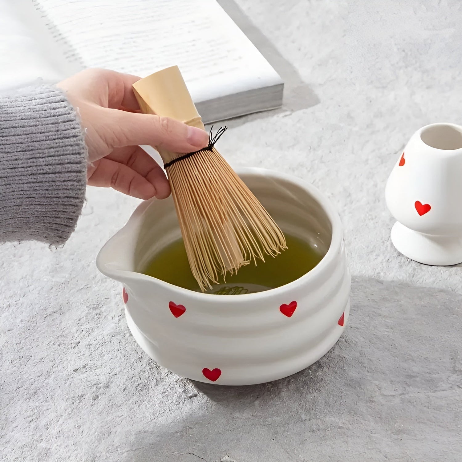 Matchaskål med hjärtdesign – 4/5 stycken utgjutare & bambu visp | Ideal för hemmabruk