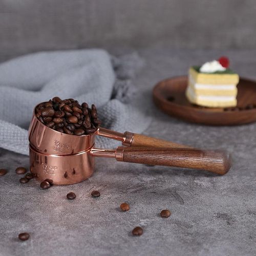 Välj ett hållbart och estetiskt alternativ med detta måttskedset tillverkat av första klassig valnötsträ och kopparbeläggning som tål disk. Med detta set kan du vara säker på att inga skadliga ämnen överförs till din mat, samtidigt som du ger köket ett stilrent och naturligt utseende.