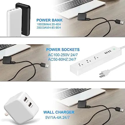 Det finns inget inbyggt batteri; istället måste du ansluta kameran till en mobil strömkälla eller en USB-port. Kameran stöder också inspelning i loop för att säkerställa att den kan spela in kontinuerligt.