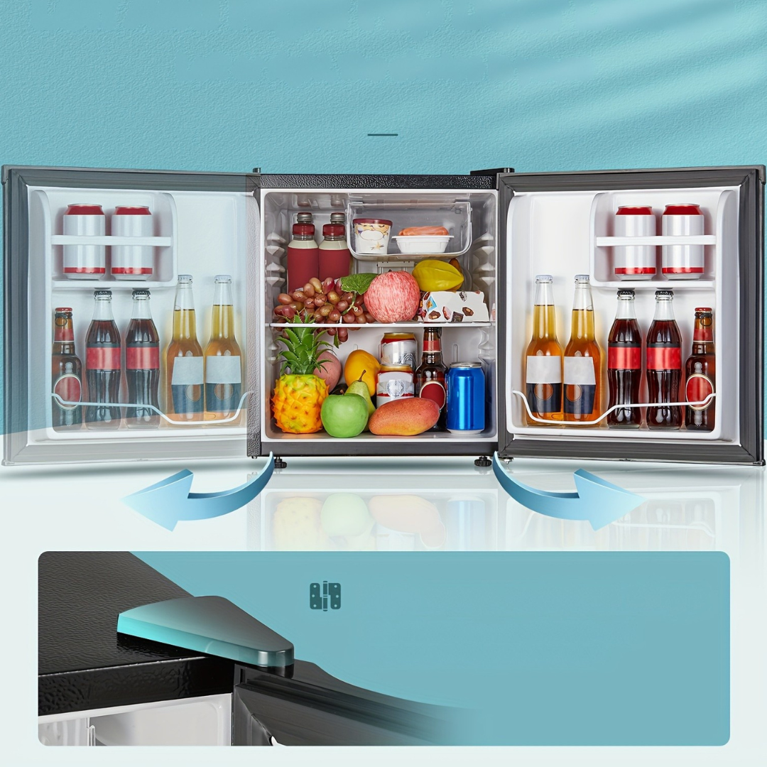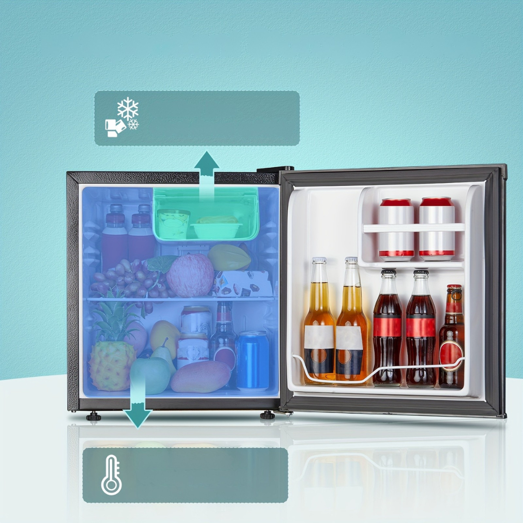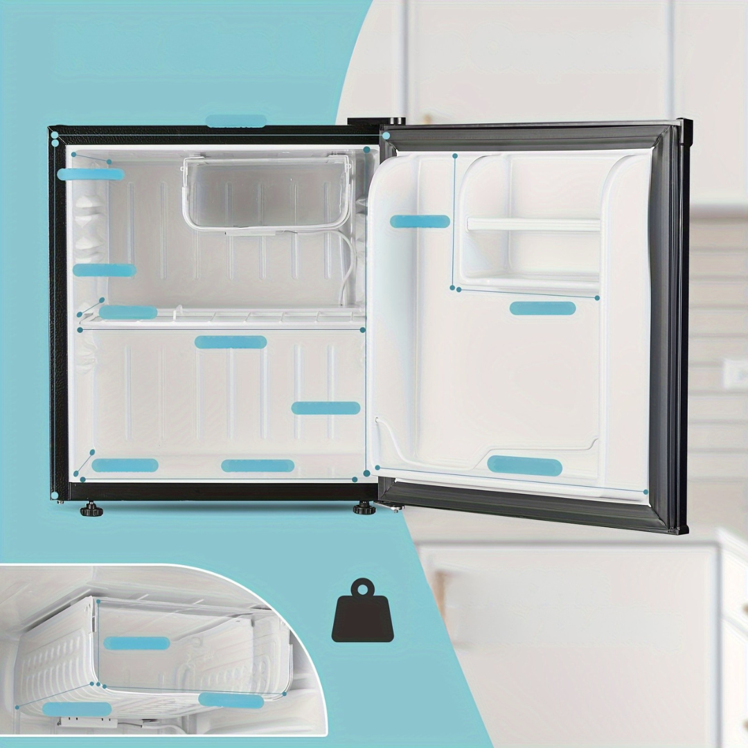 Detta mini kylskåp är perfekt för att hålla dina drycker, snacks eller måltider kalla i små utrymmen. Med en kompakt design och bordsstorlek passar det enkelt i kök, sovrum eller kontor. Med en glansig yta, omvändbar dörr och inbyggd frys är detta plug-in mini kylskåp en praktisk och stilren kylninglösning för varje hem.
