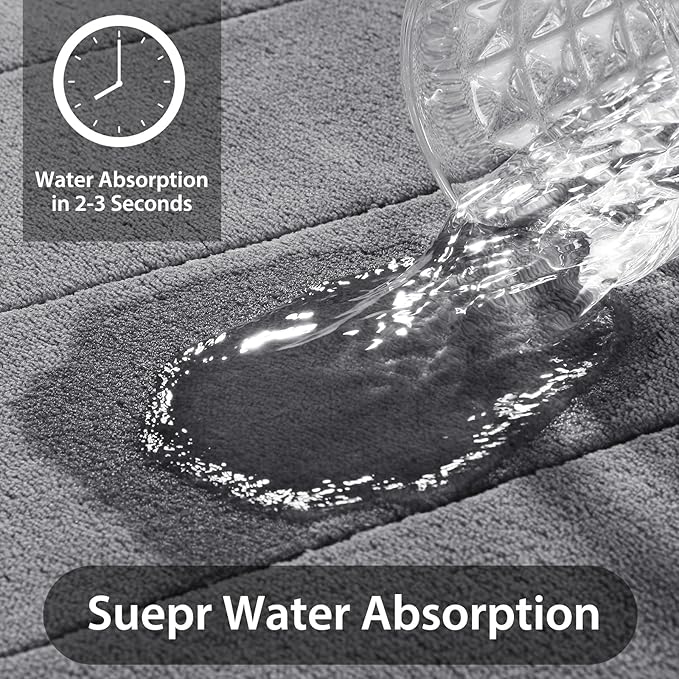 Uppgradera till ett säkrare och mer bekvämt badrum med våra Memory Foam-badmattor! Säg adjö till kalla, fuktiga golv – våra lyxiga mattor säkerställer att dina fötter sjunker ner i mjuk memory foam som absorberar vatten 3x snabbare än vanliga mattor!